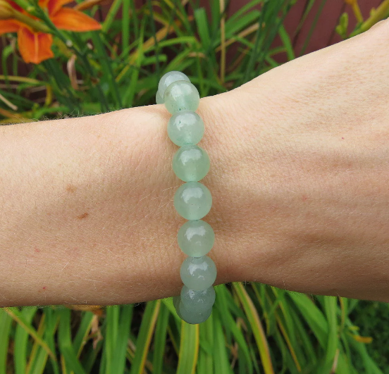 Green Aventurine stretched bracelet made with high-quality elastic and 8mm green aventurine gemstones that easily slip on and off making them perfect for any occasion.