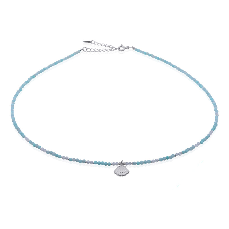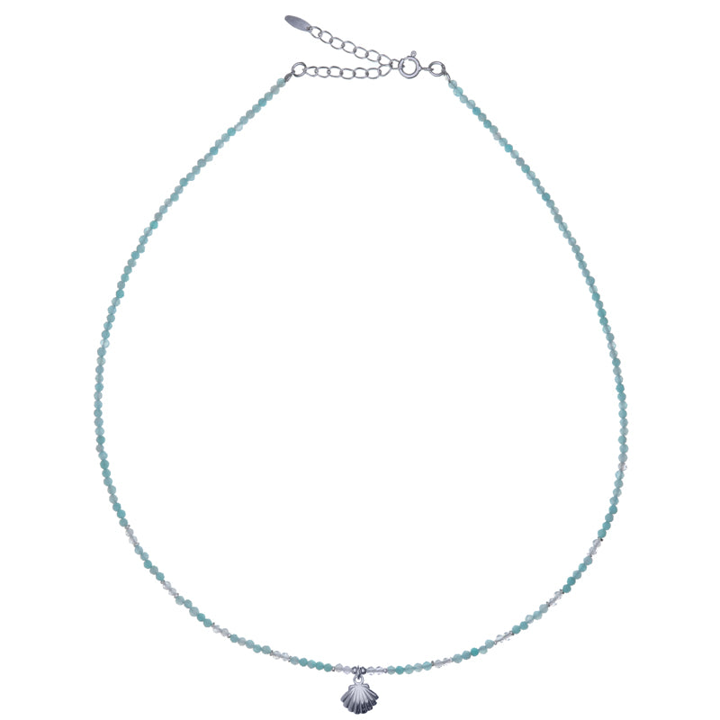 Beaded Amazonite and Moonstone necklace with Sterling Silver shell charm.