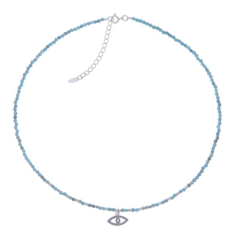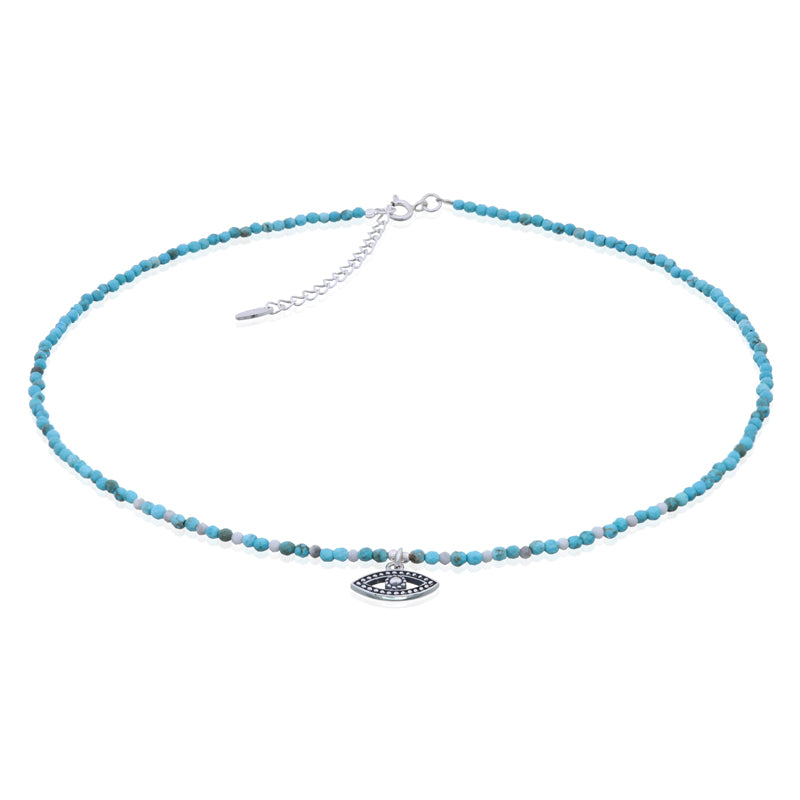 Beaded white Howlite and Turquoise Sterling Silver evil eye necklace.