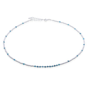Beaded Sterling Silver necklace with blue apatite gemstones.