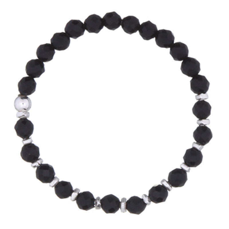 Faceted Black Onyx stretch ring with Sterling Silver beads available in small, medium, large.