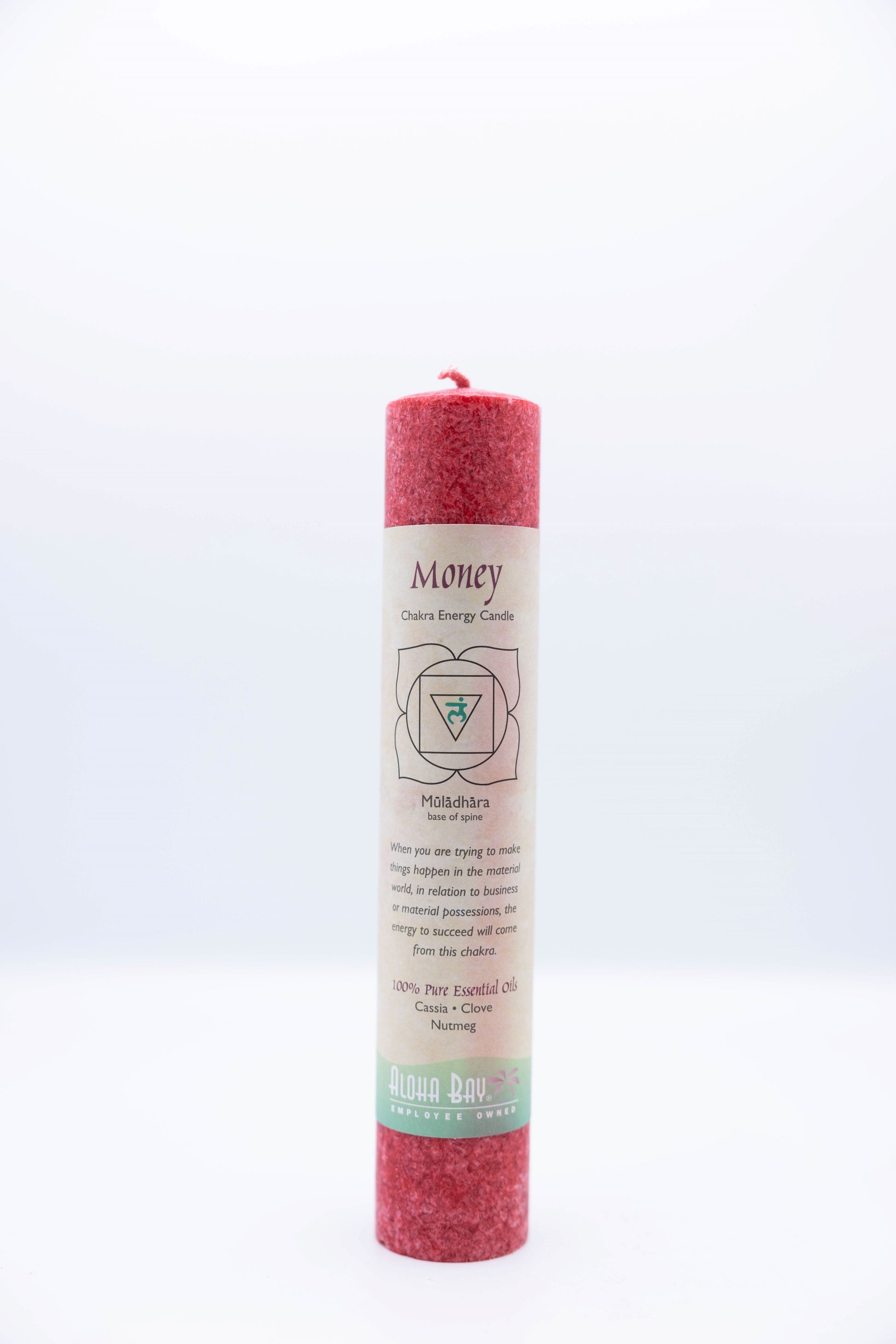 Our Chakra Energy Pillar - Money, is designed for the Root chakra in vibrant red. Infused with Cassia, Clove, and Nutmeg, this candle empowers you to manifest success in the material realm. Illuminate your space and ignite your ambition with our Money candle, guiding you towards prosperity and wealth.