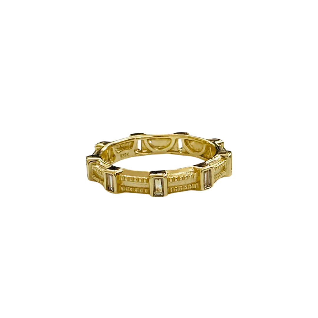 14K Gold Plated Sterling Silver band with clear CZ baguettes.