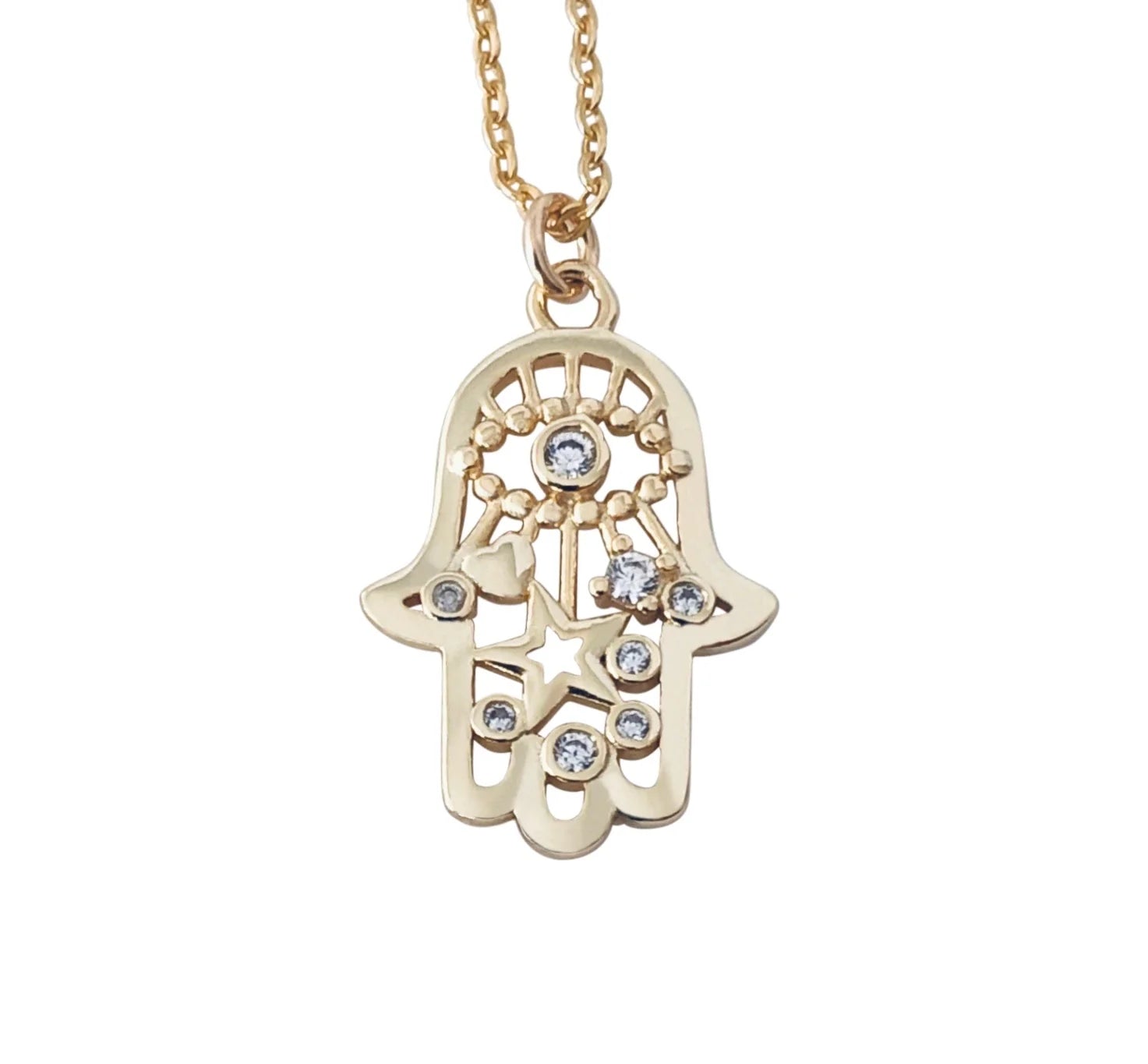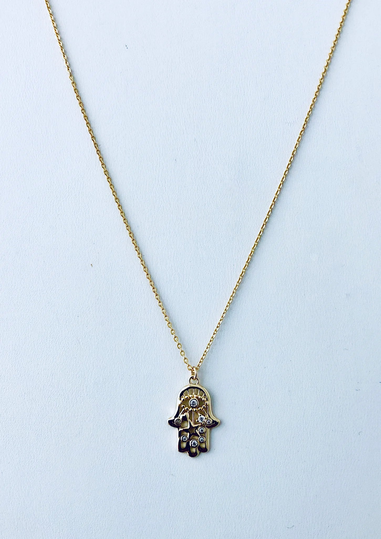 The Hamsa Hand is a universal sign of prosperity, protection, and connection to the divine. Bring for the abundant energy with our gorgeous evil eye star necklace and mini CZs.