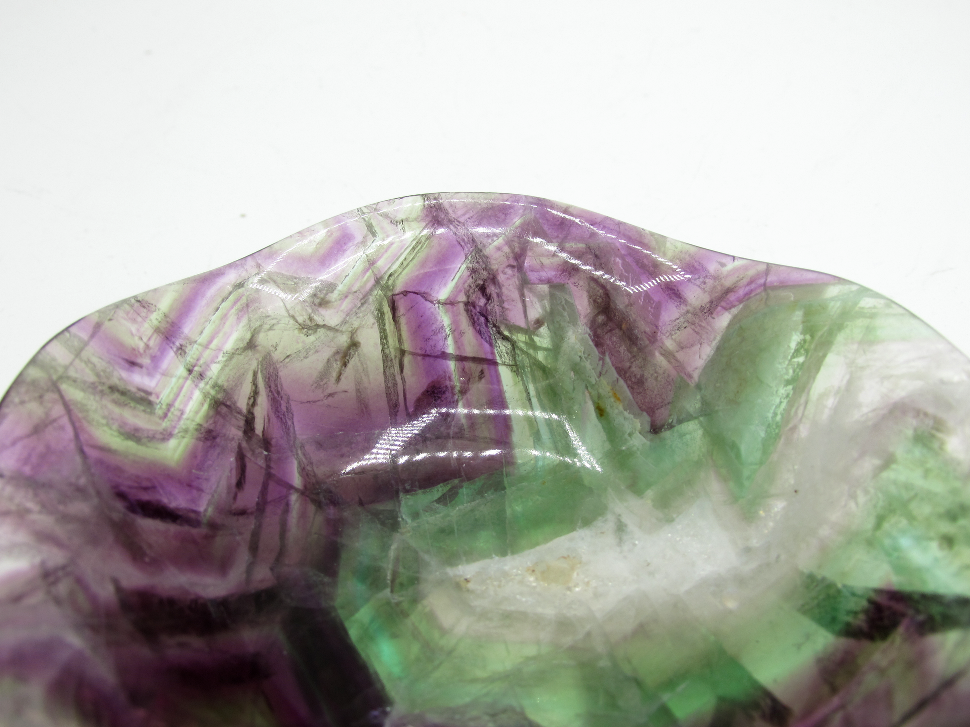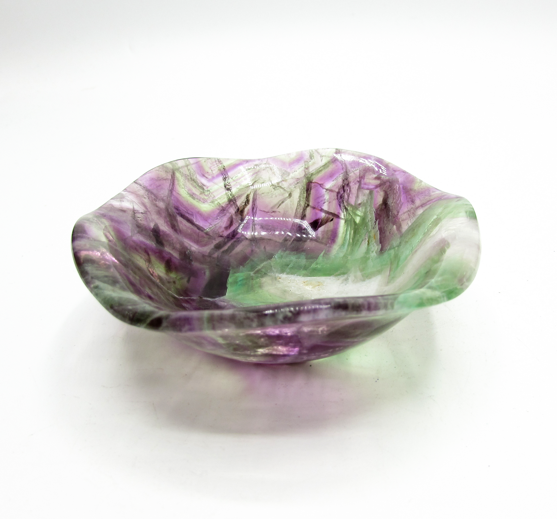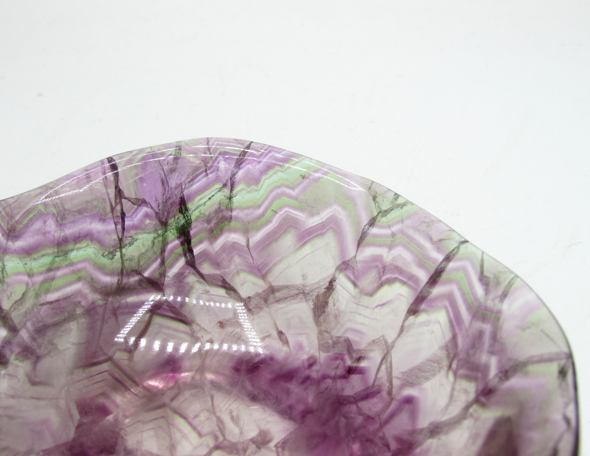 Gorgeous purples and greens swirl over this stunning Fluorite bowl.