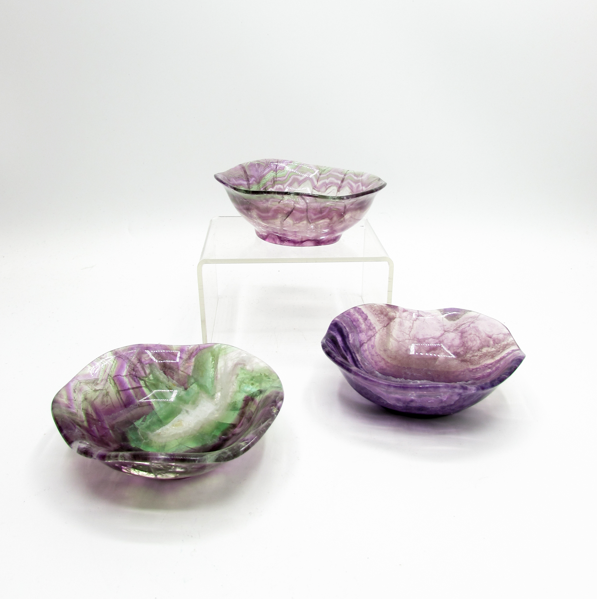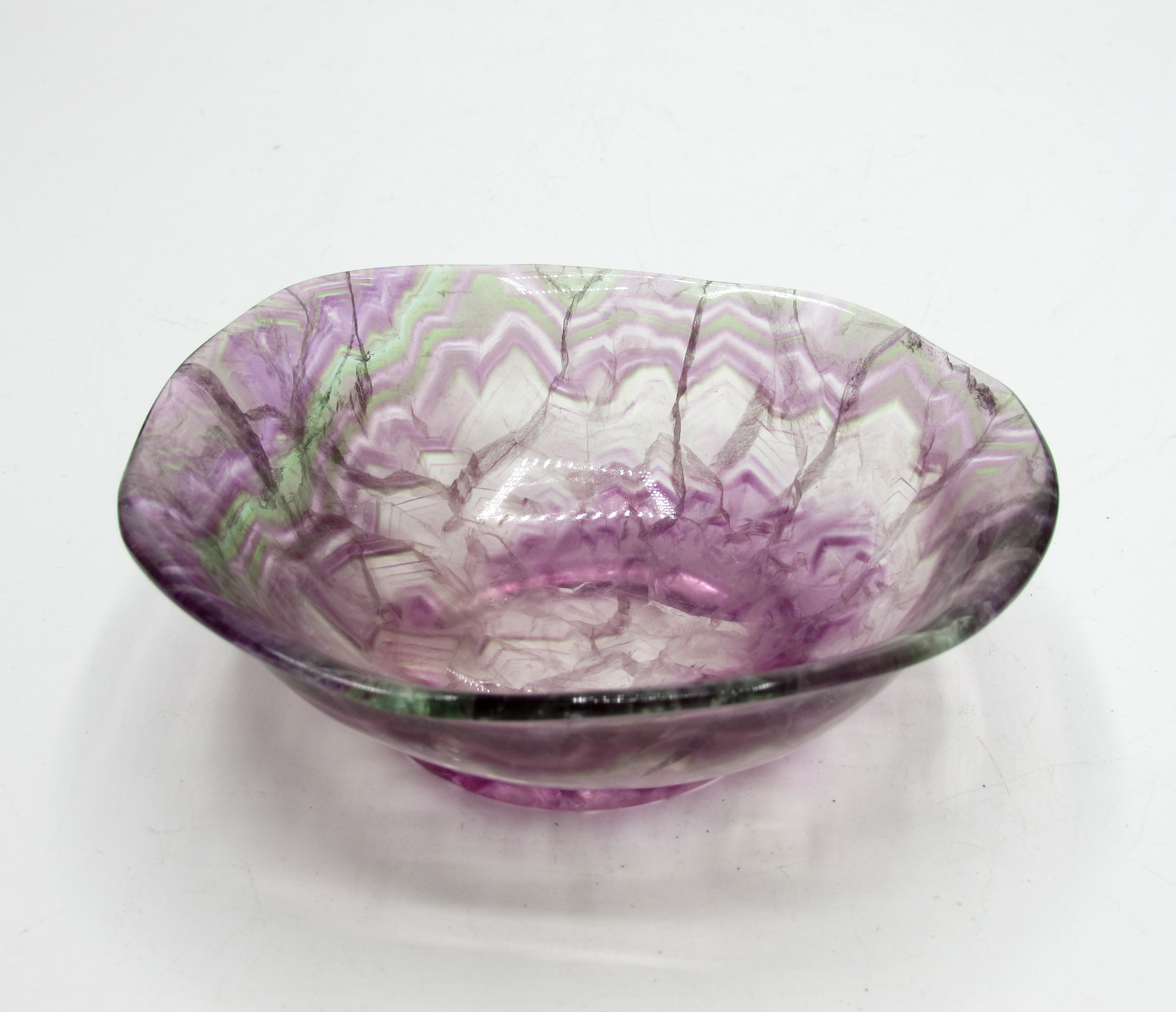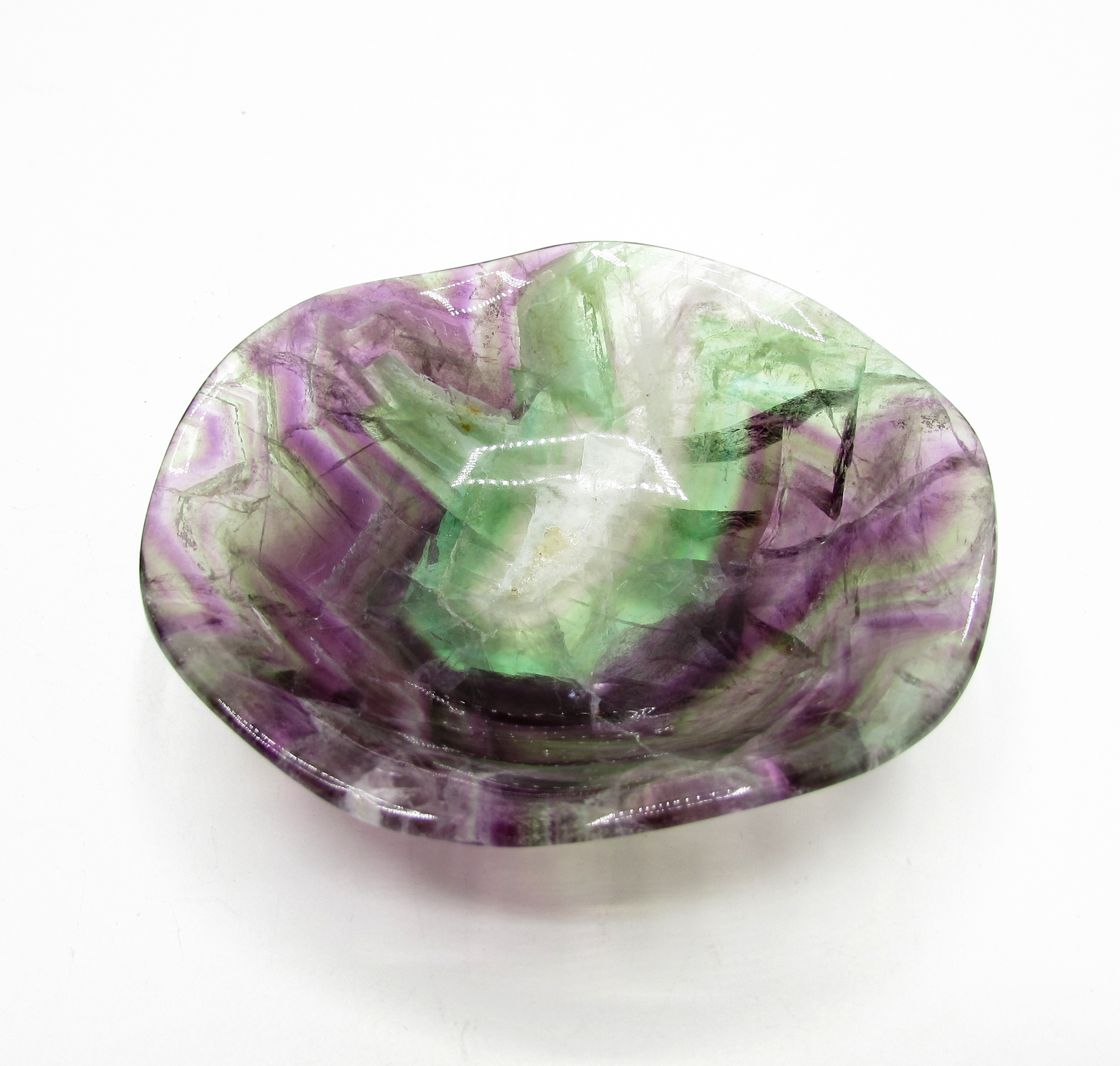 Gorgeous purples and greens swirl over this stunning Fluorite bowl.