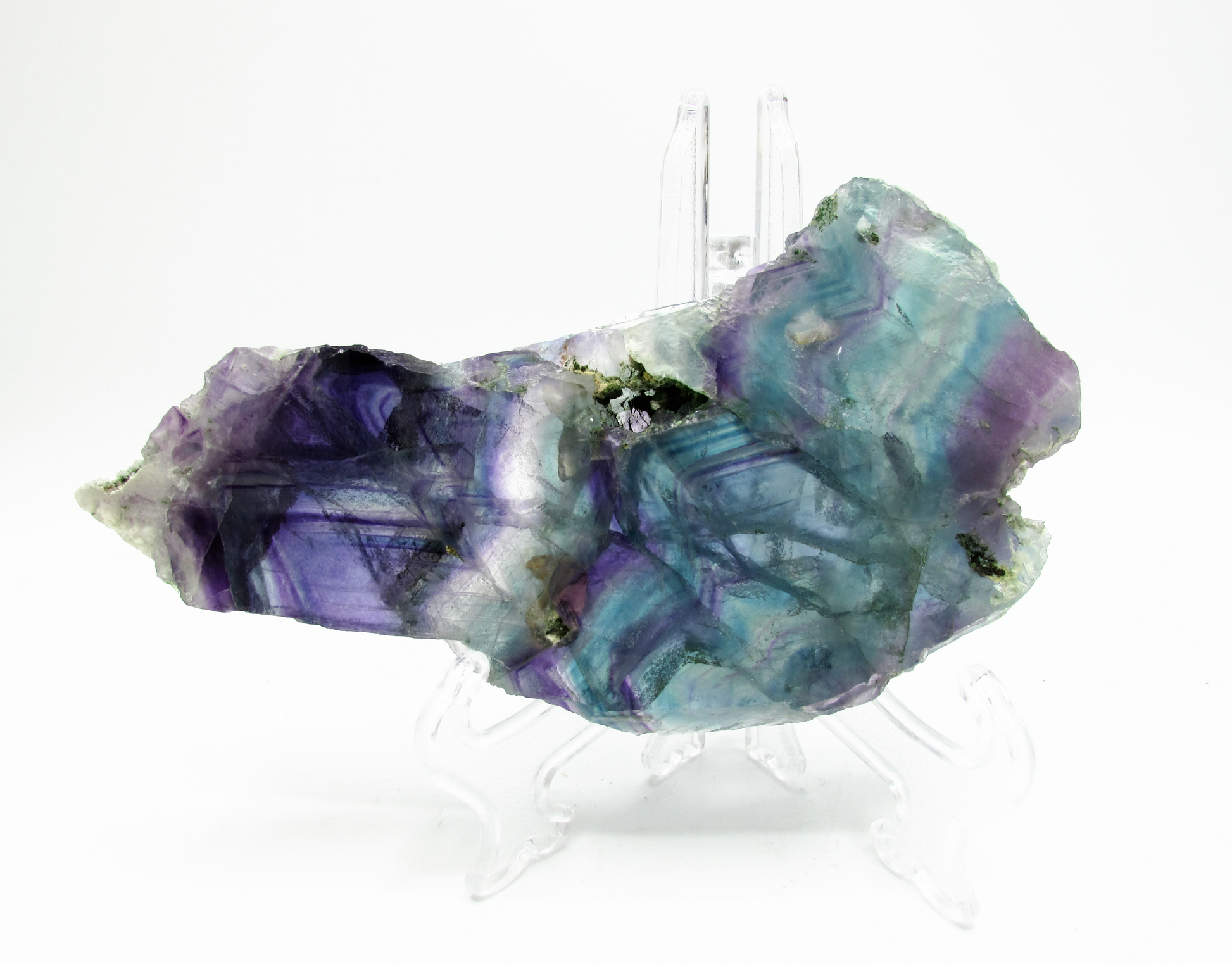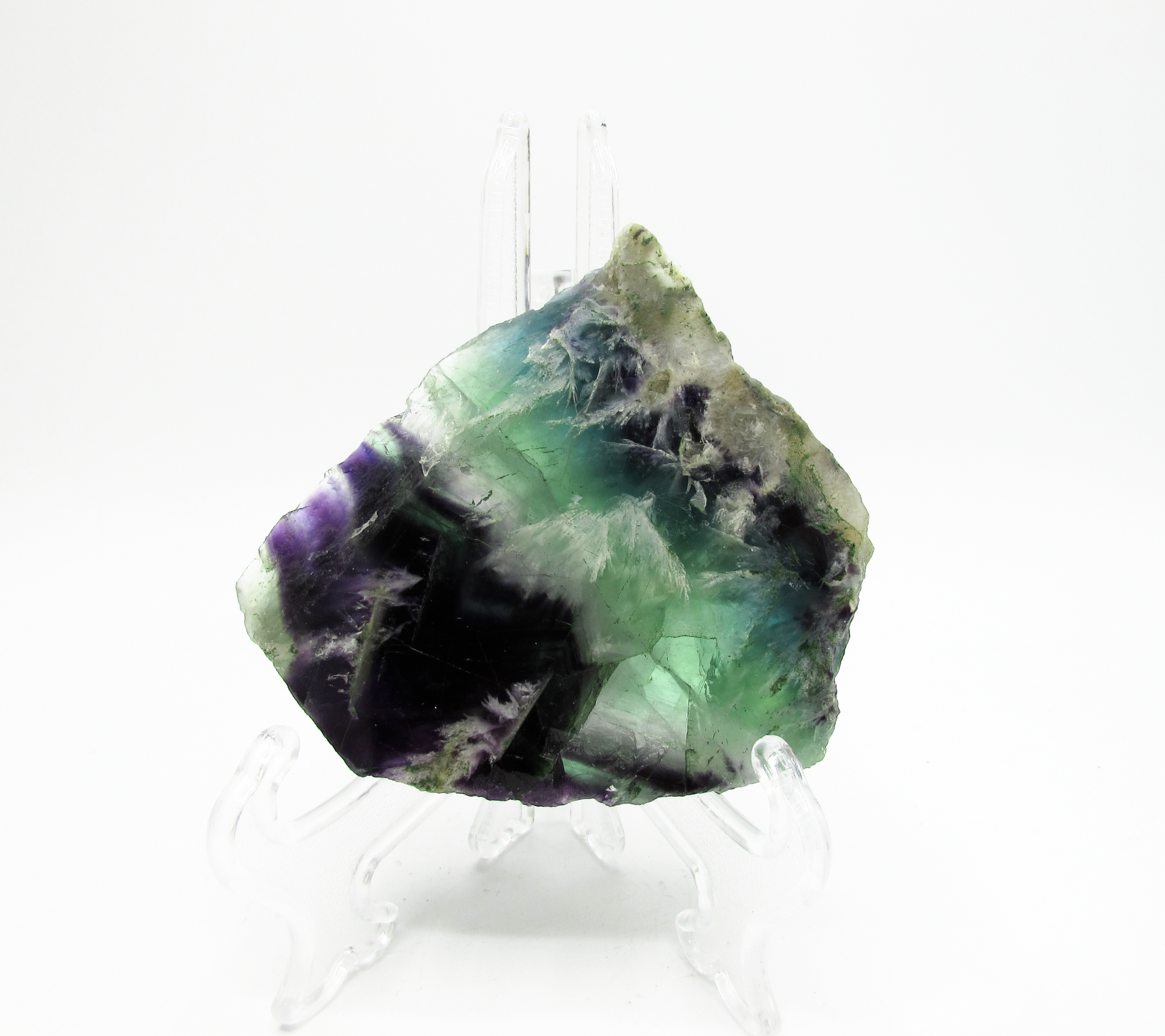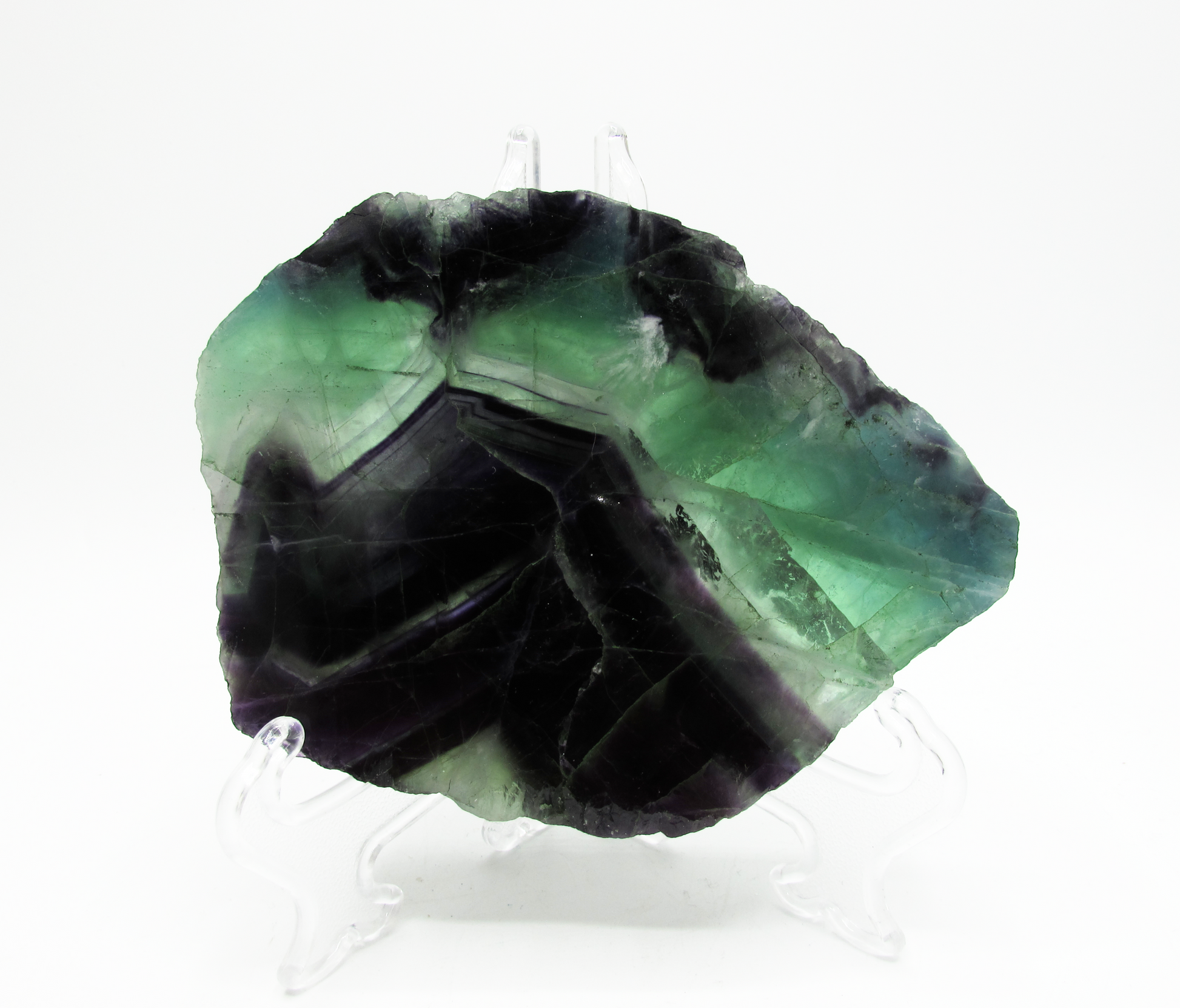 Stunning swirls of purples, greens, blues, and clear tones make these fluorite slabs stand out as a true one-of-a-kind piece.