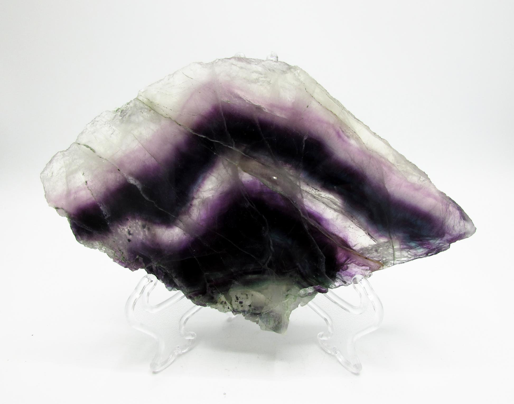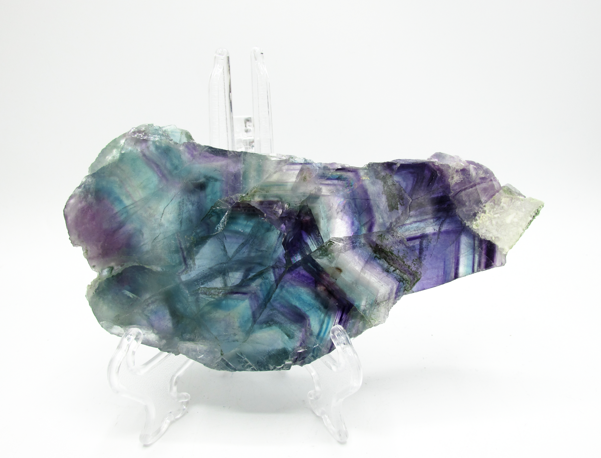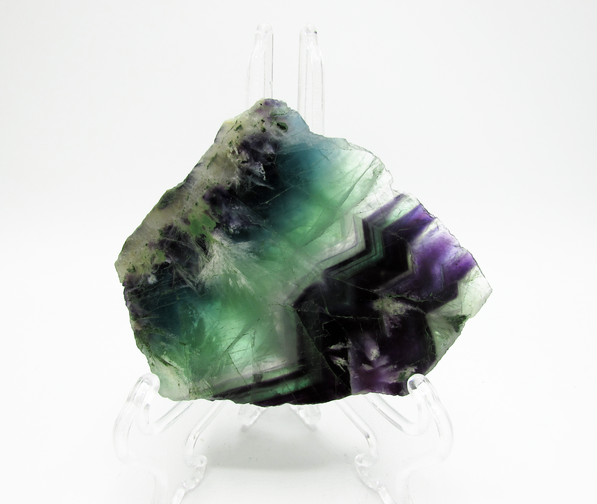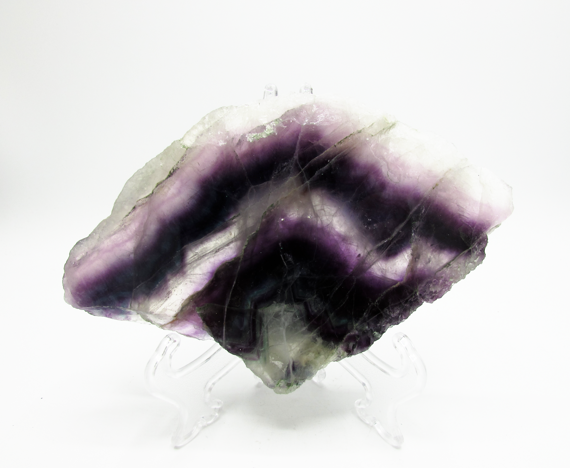 Stunning swirls of purples, greens, blues, and clear tones make these fluorite slabs stand out as a true one-of-a-kind piece.