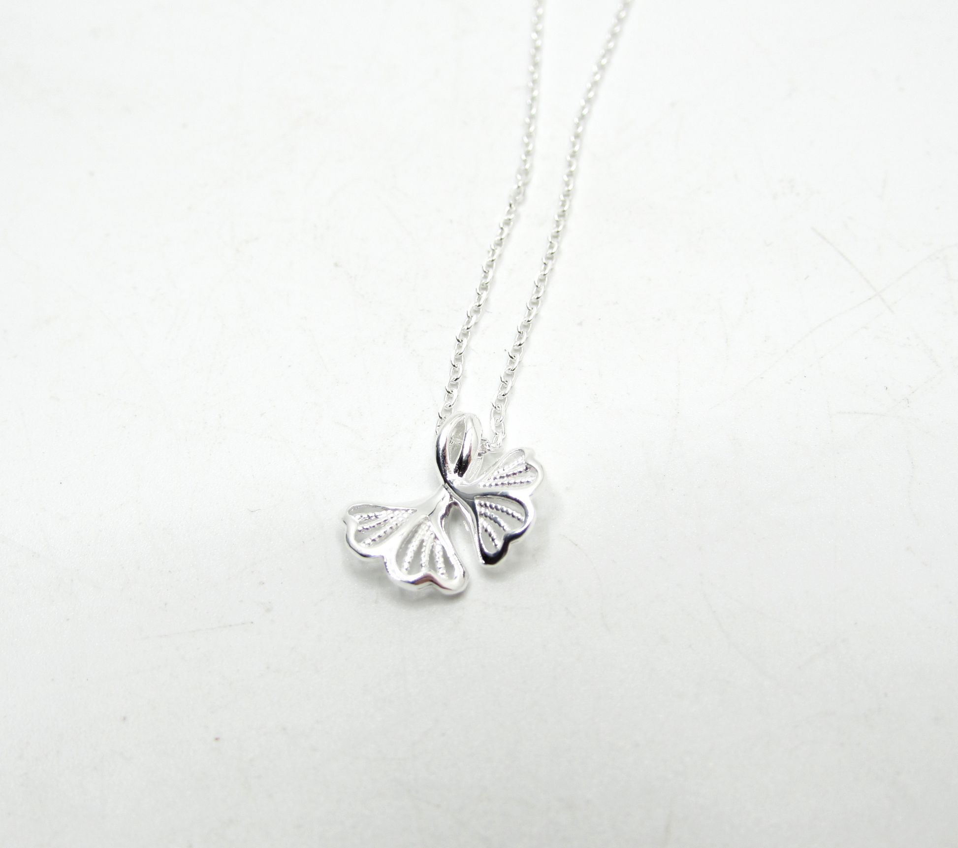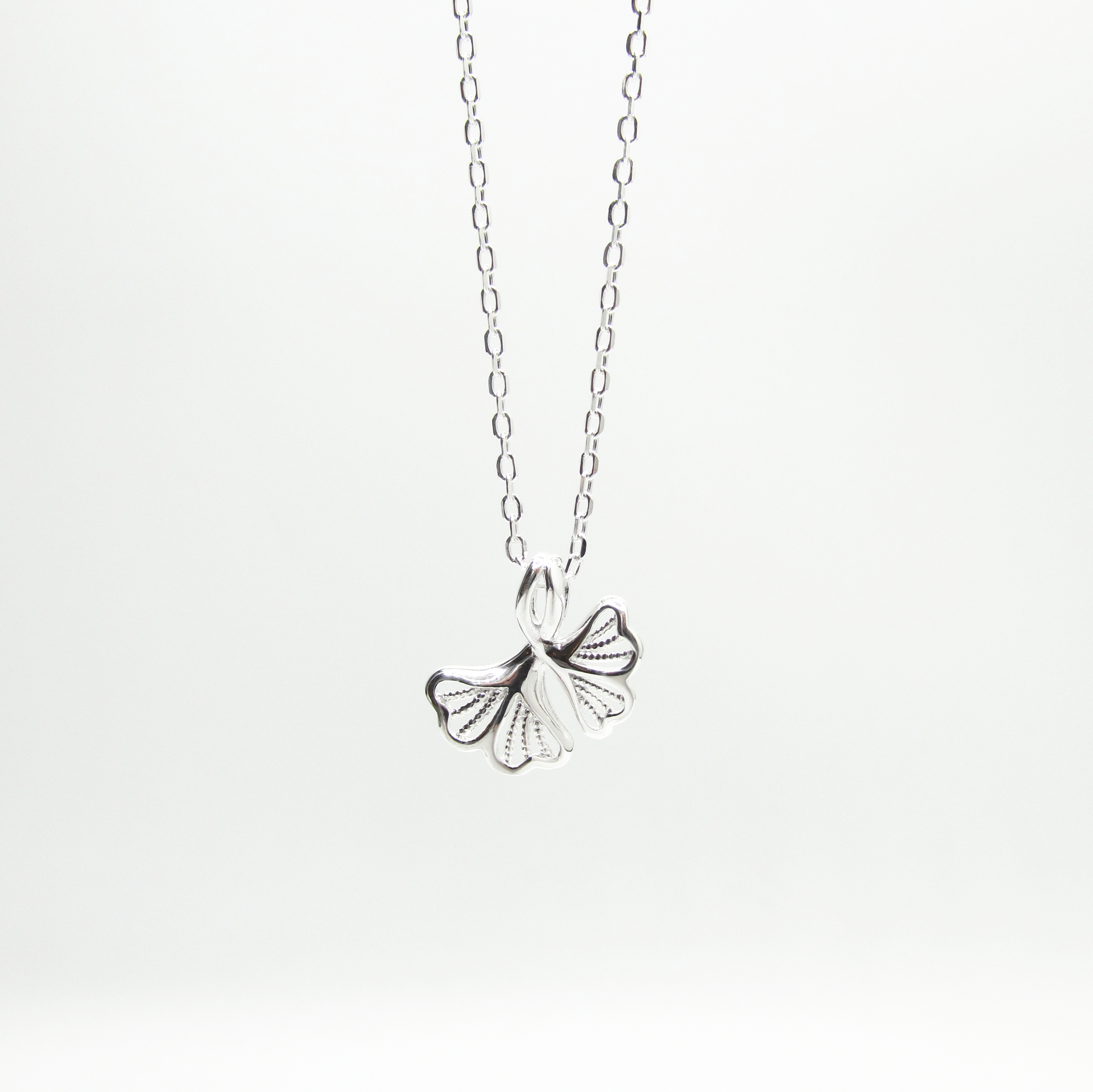 Iconic silver Ginkgo Fan Leaf pendant on a simple chain