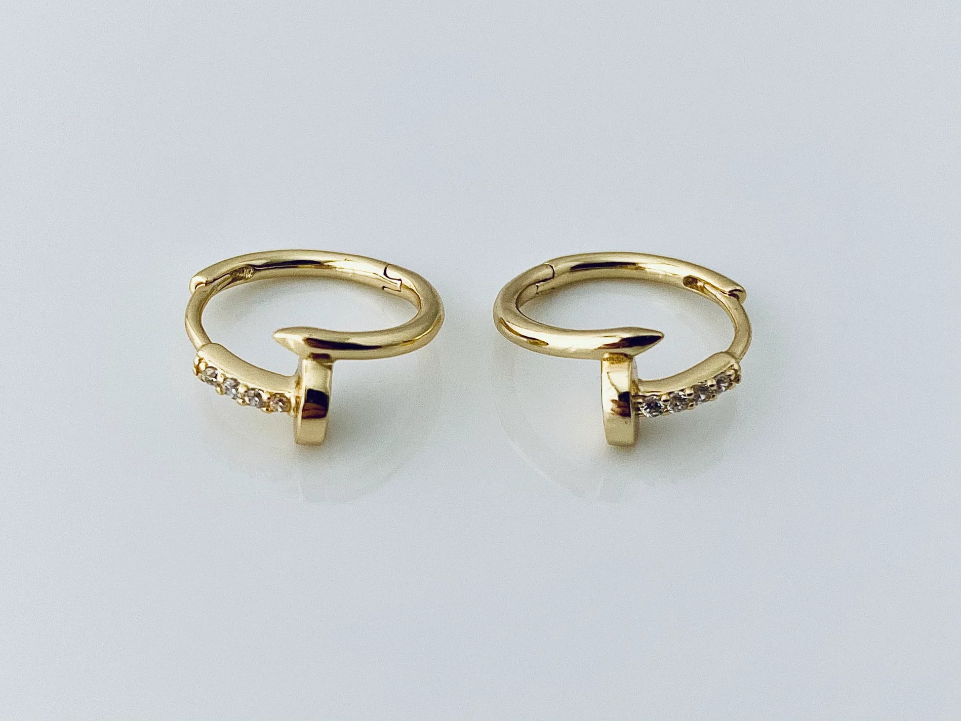 Nail shaped click back hoop earrings with CZ accent. Buy the matching ring to complete the look!