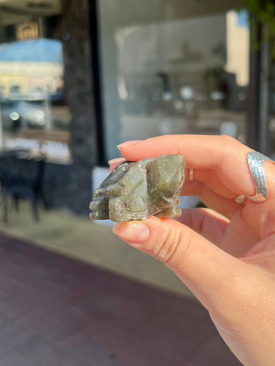 Genuine labradorite cut and polished into the shape of a Tortoise
