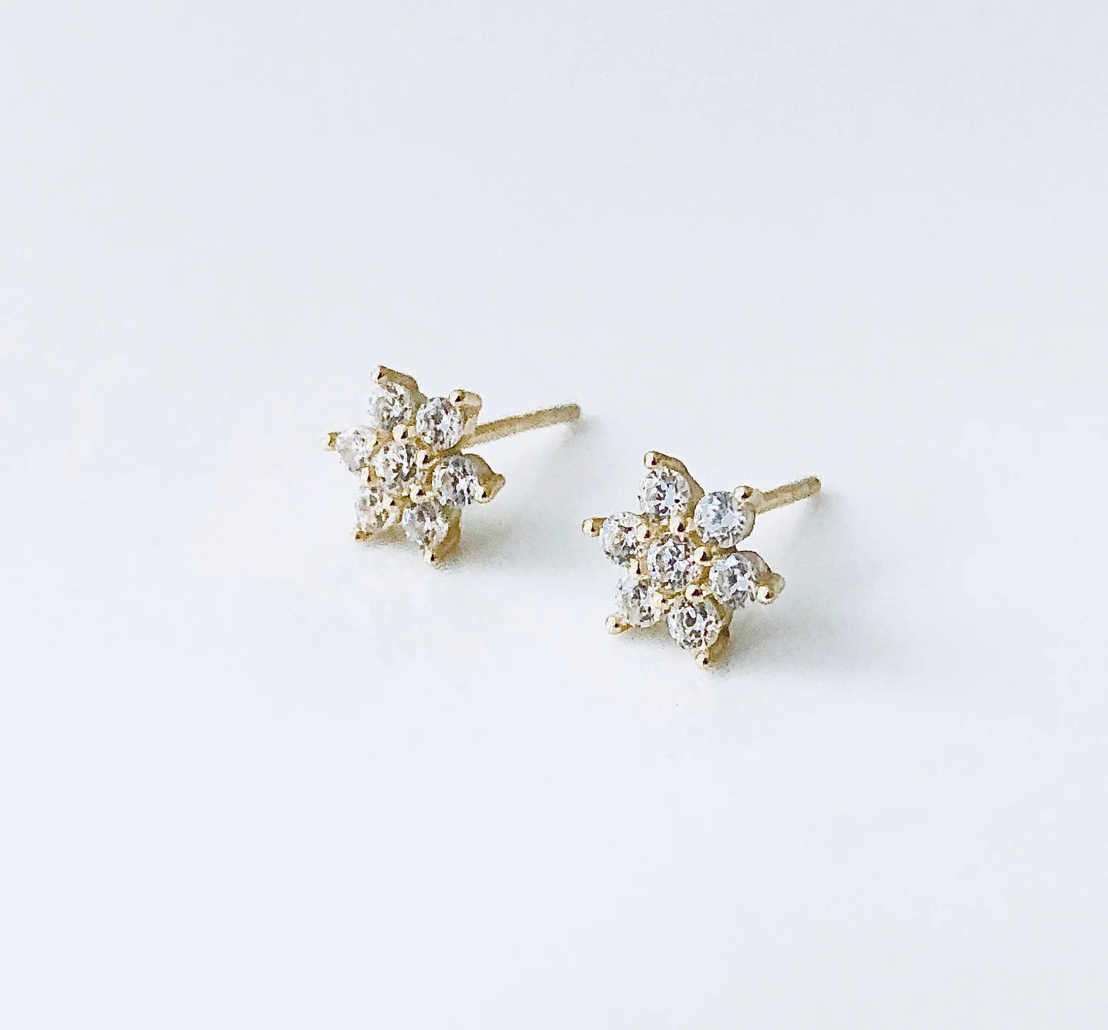 Mini CZ flower studs. Get the matching necklace to complete the look!