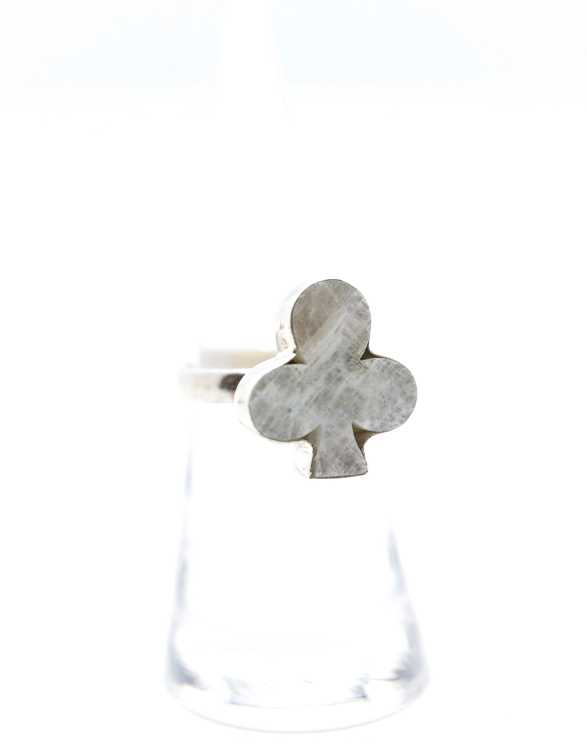 Bring in the luck with our clover shaped Rainbow Moonstone ring!