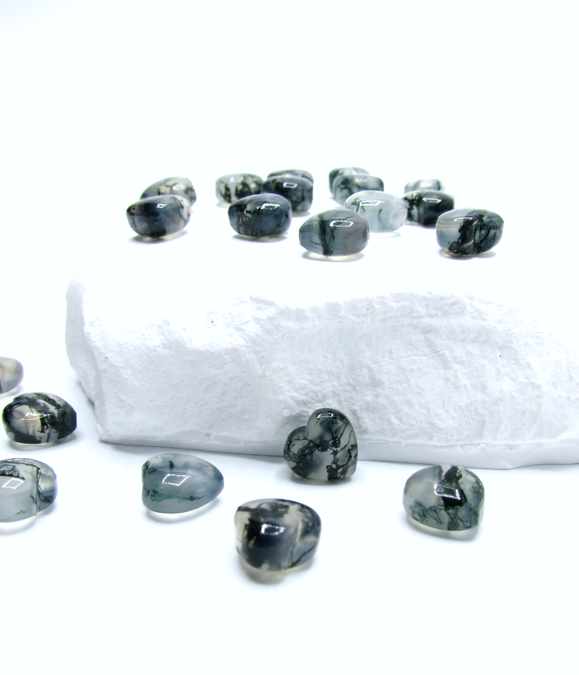 Grade A genuine natural hand carved 8mm Mini Moss Agate heart.