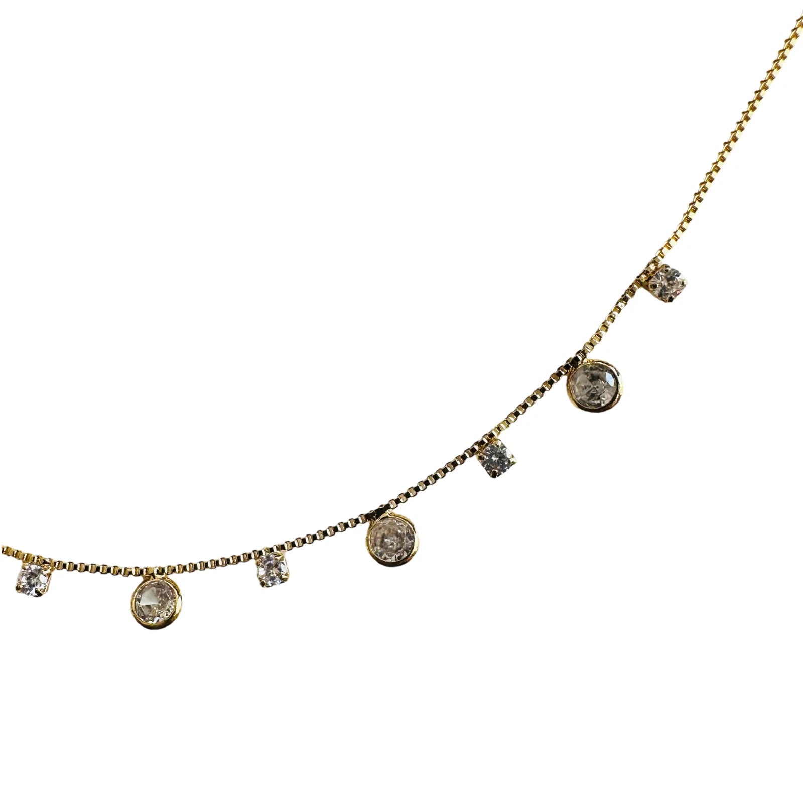 Elegant multi CZ necklace that can be worn by itself or as a beautiful layered look.