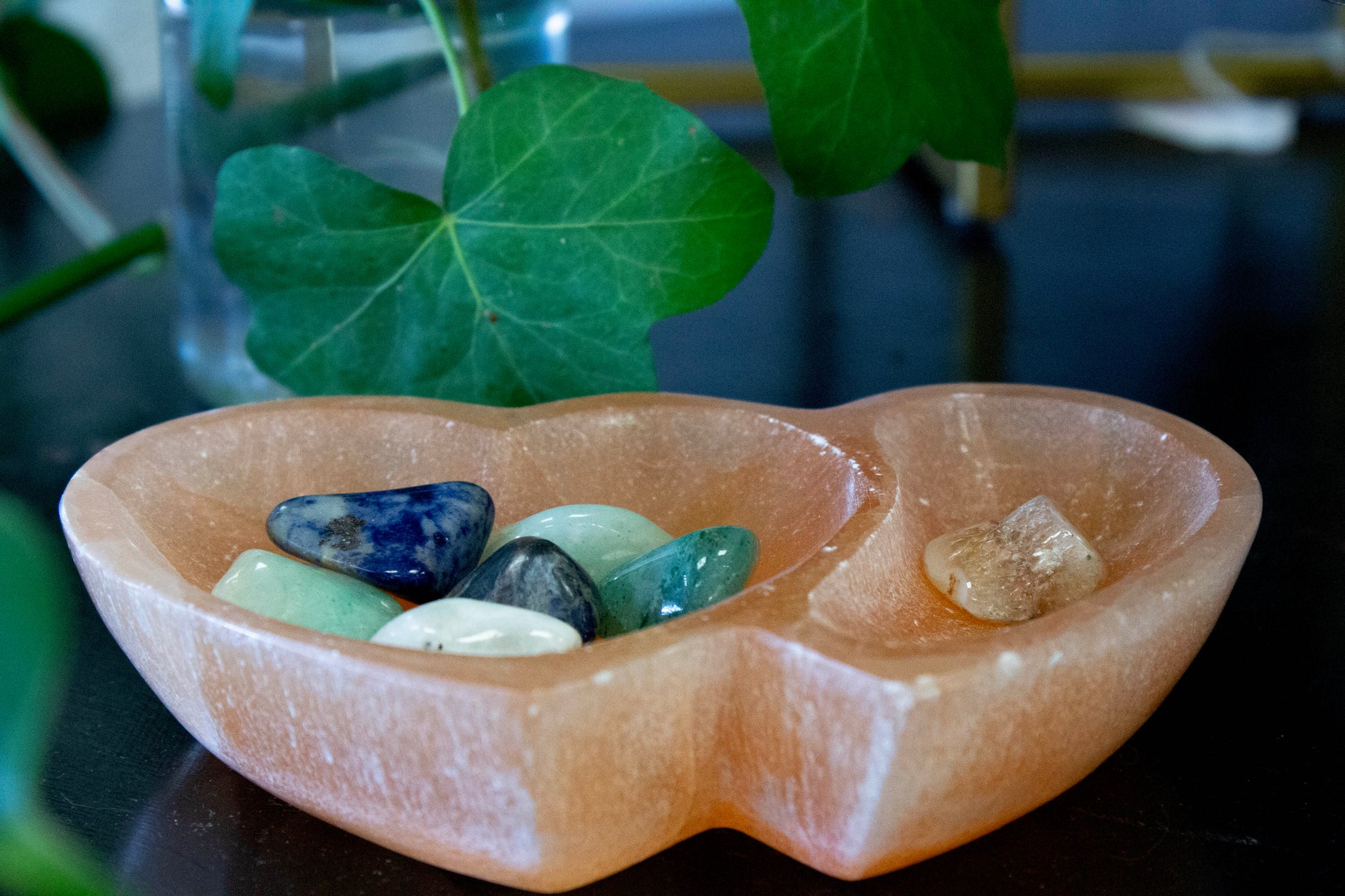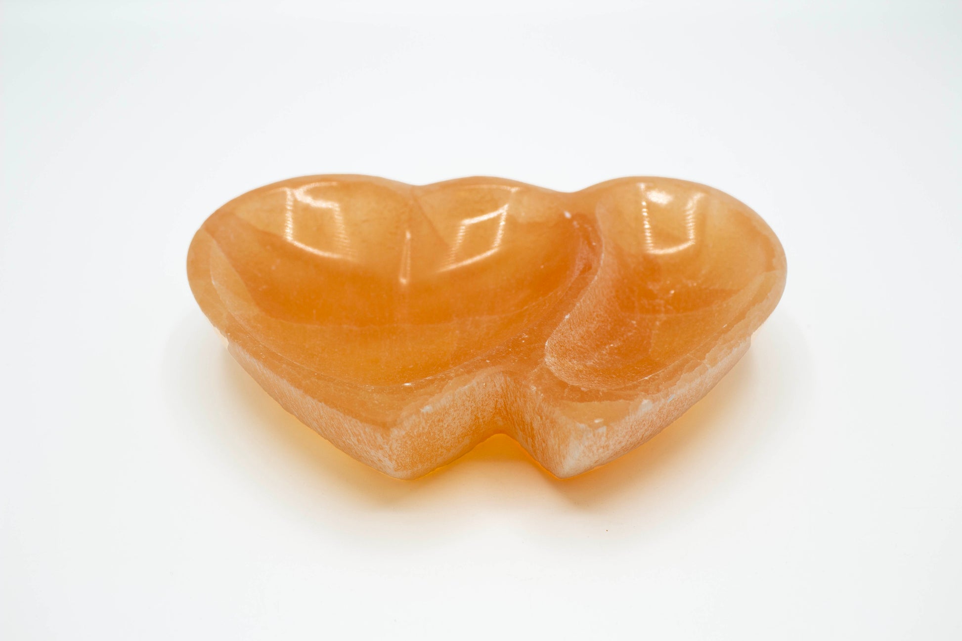 Peach selenite double heart bowl is the perfect way to showcase and cleanse your crystals and makes the perfect catch all for jewelry.