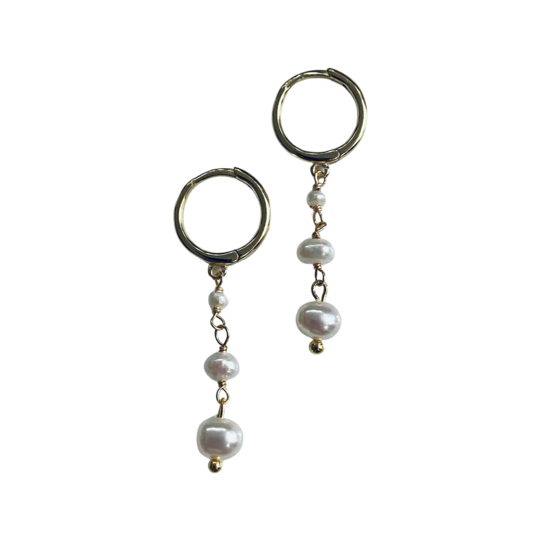 Pearl Drop Huggie 14K GP