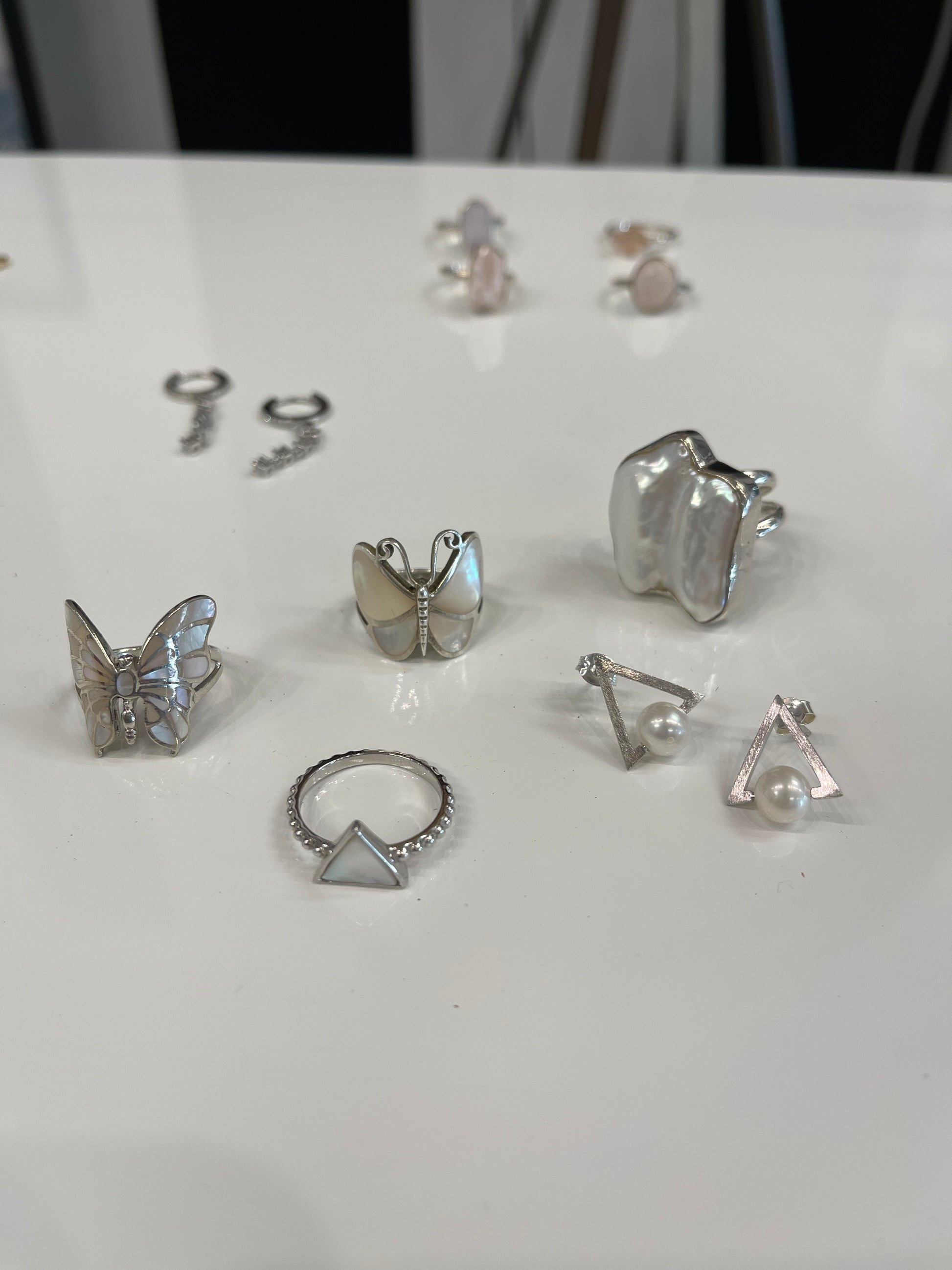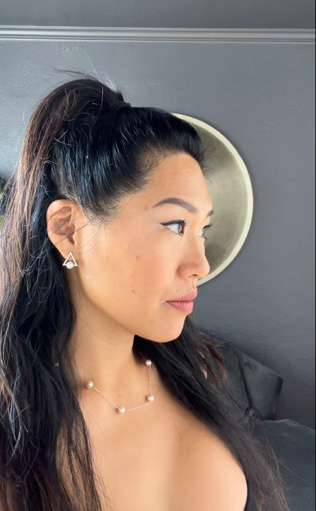 Pearl Triangle Earring Matte .925
