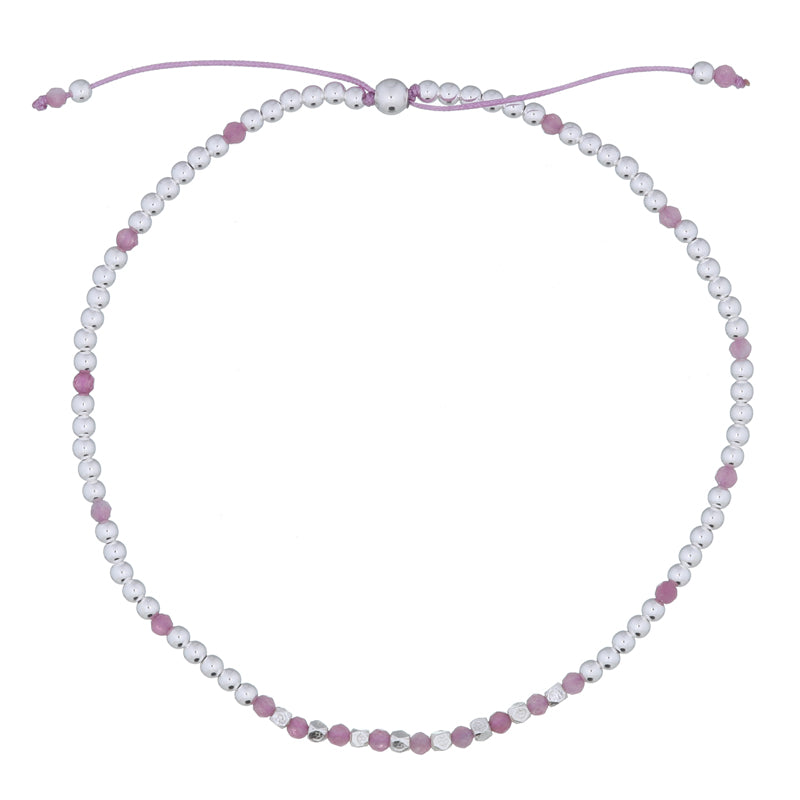 Faceted Pink Tourmaline and Sterling Silver beaded toggle bracelet.