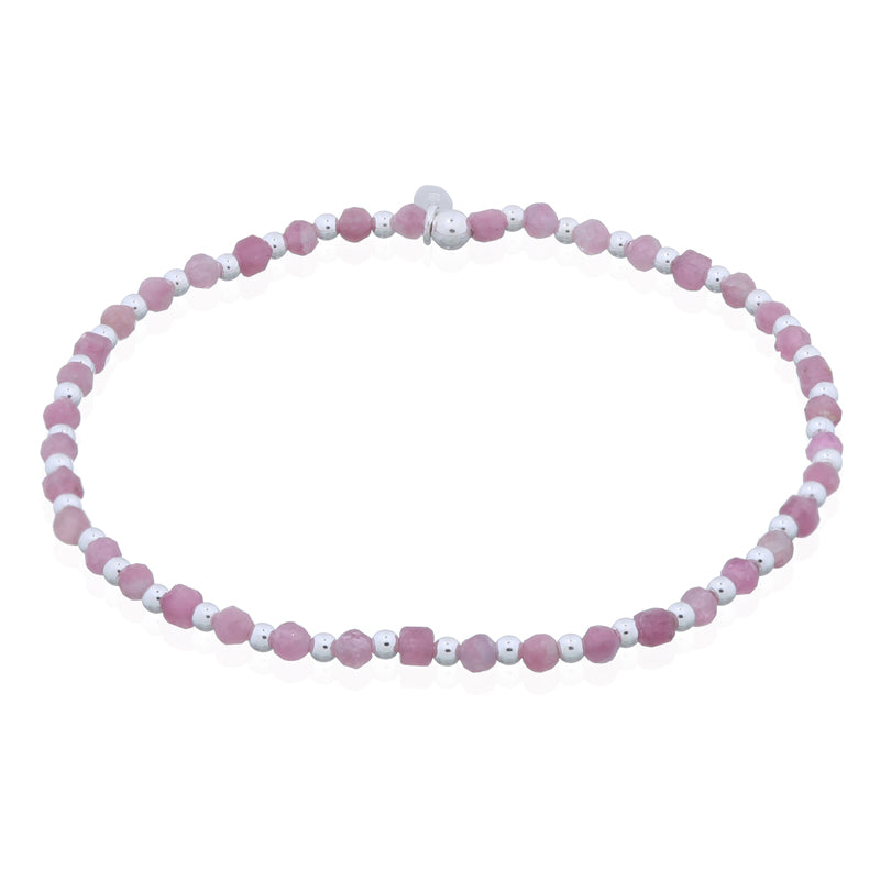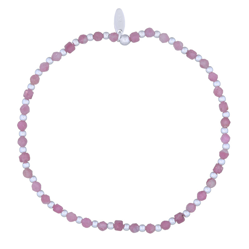 Faceted pink tourmaline stretchy bracelet with Sterling Silver accent beads.