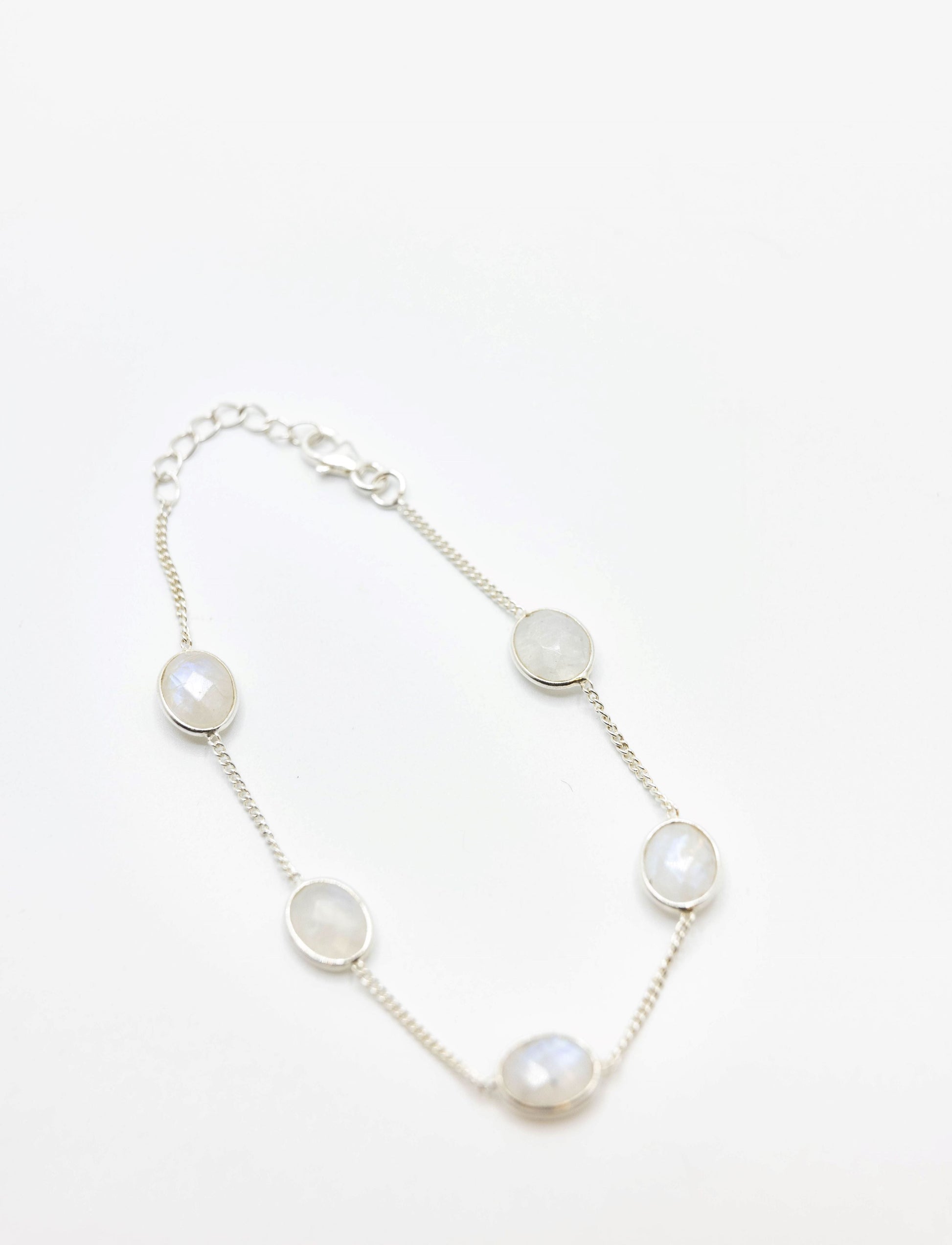 Dainty Rainbow Moonstone Crystal Chain Link Bracelet .925 Sterling Silver.