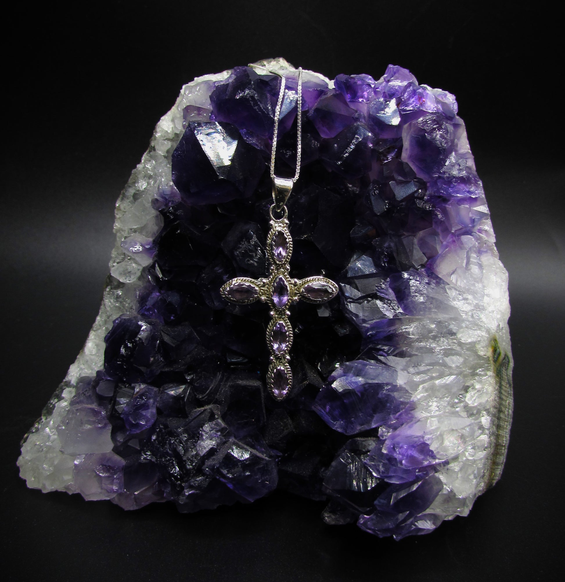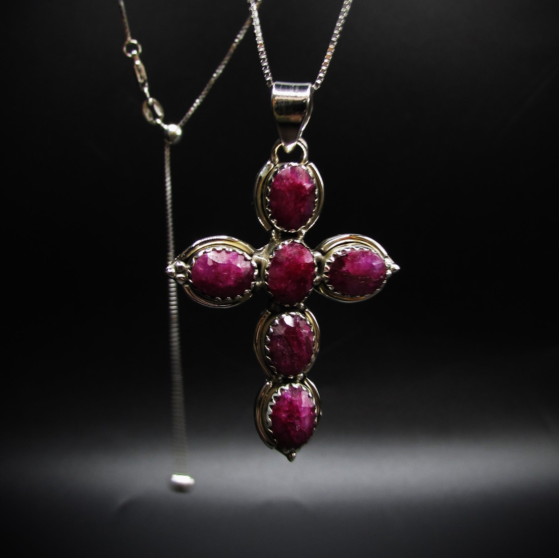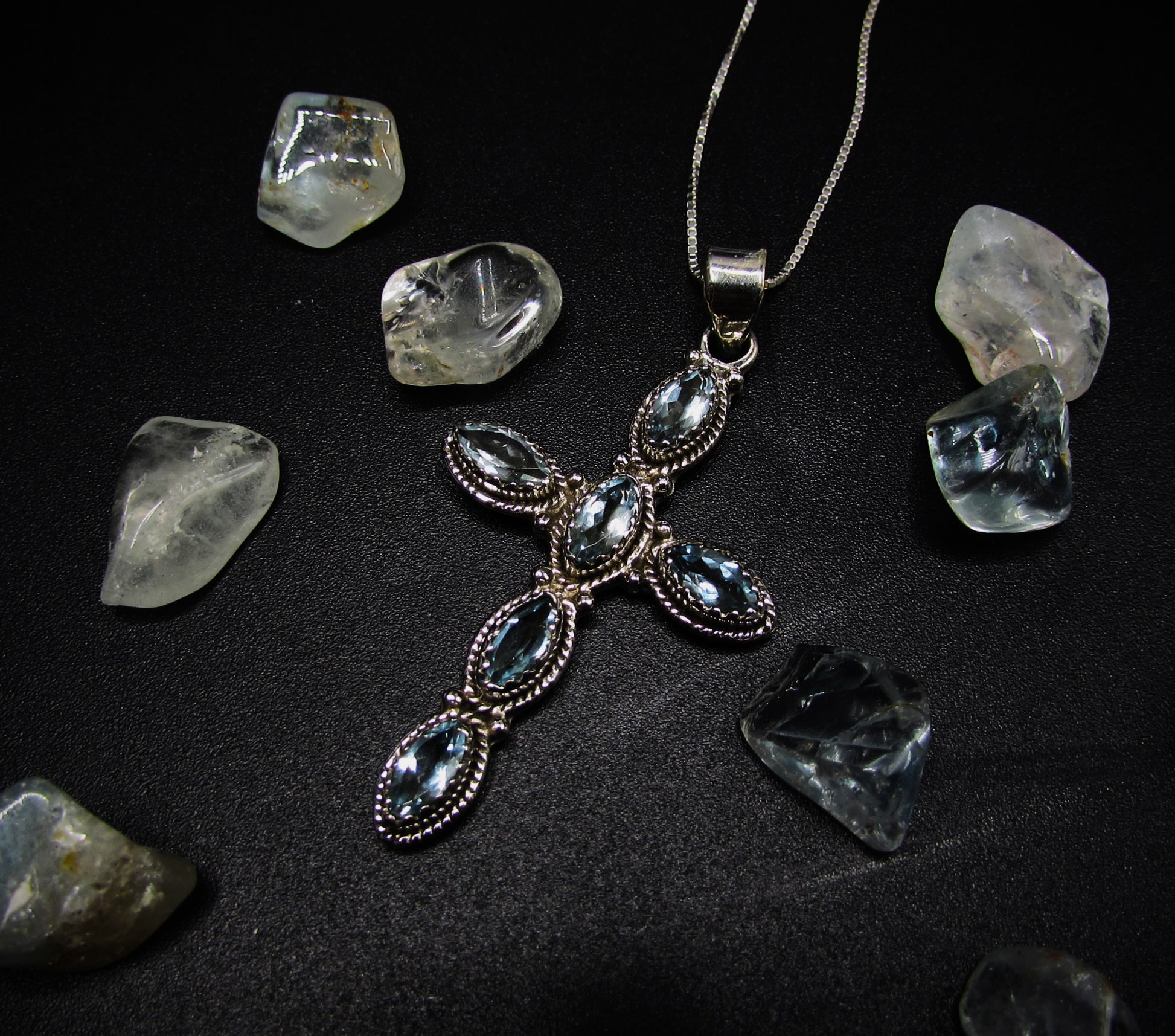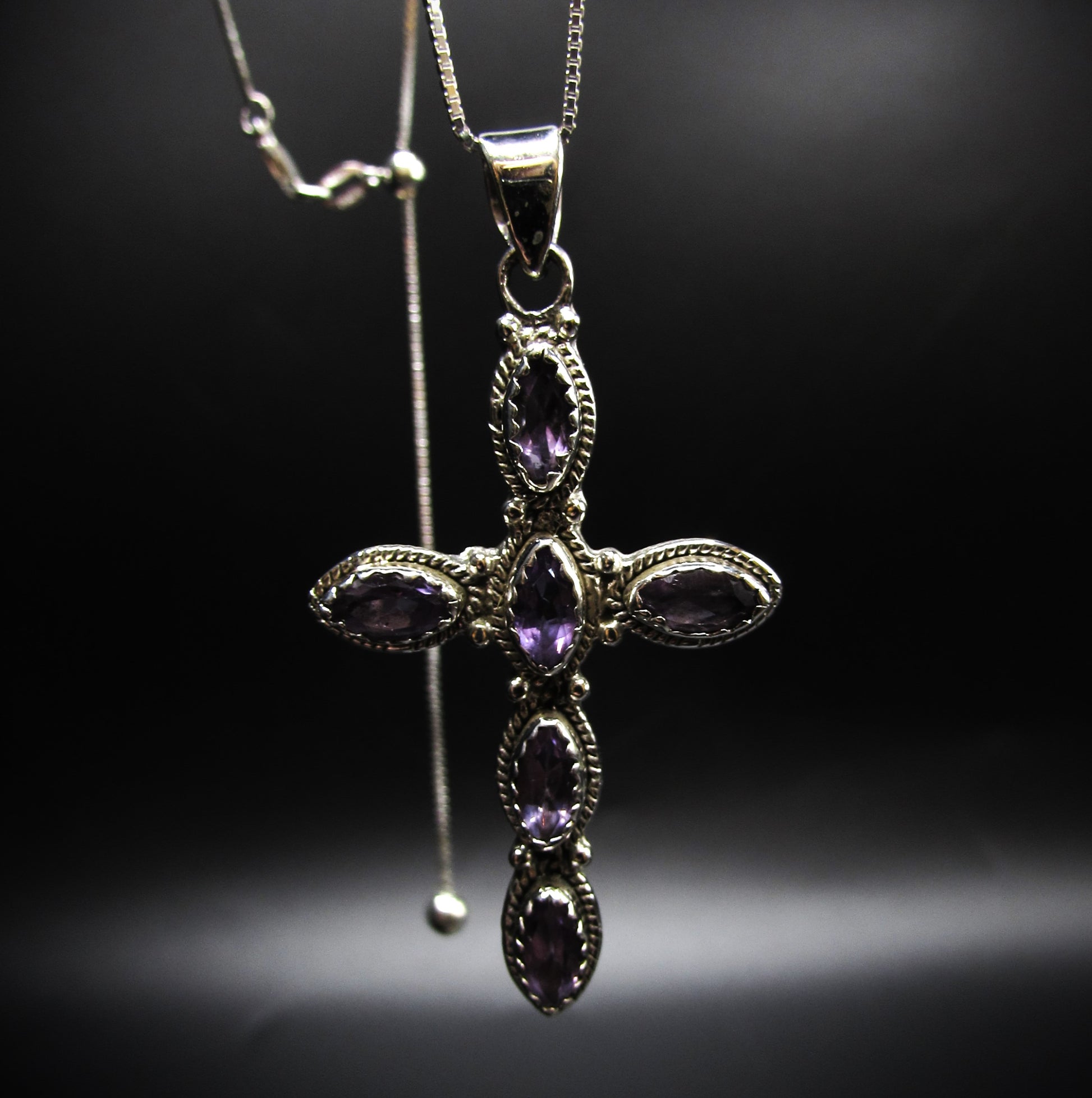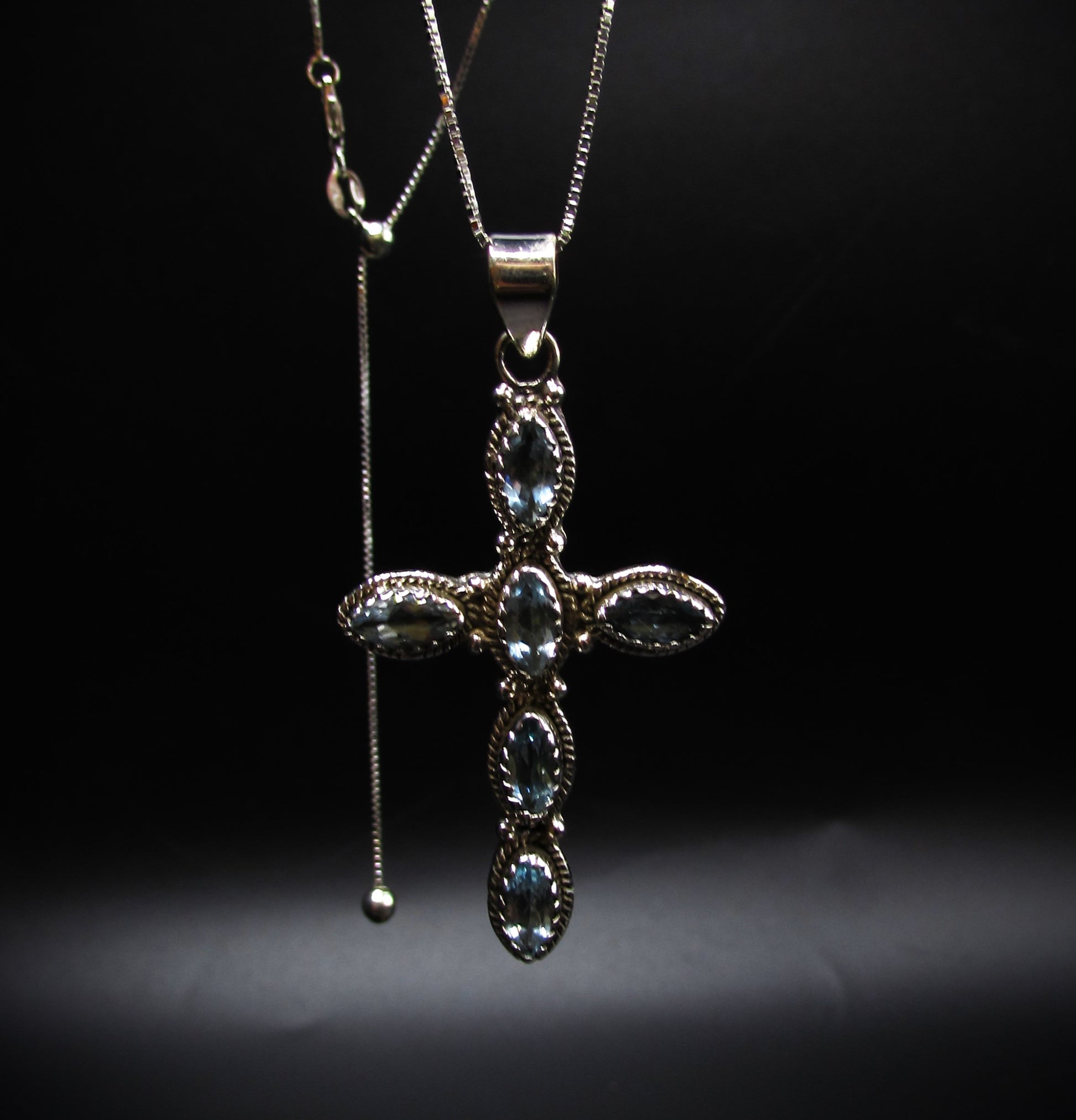 .925 Sterling Silver Cross embedded with genuine Crystals on an adjustable chain