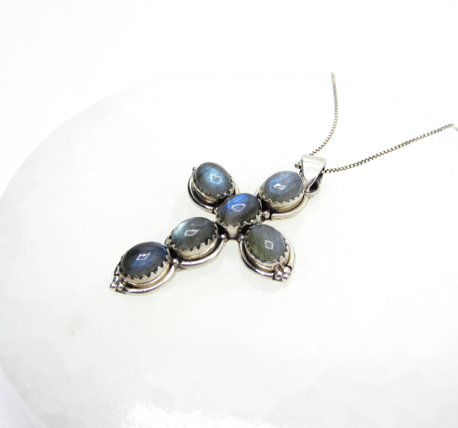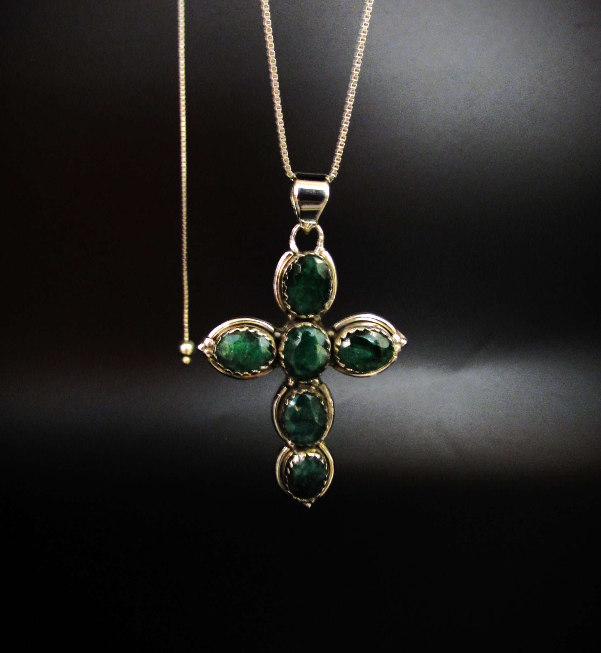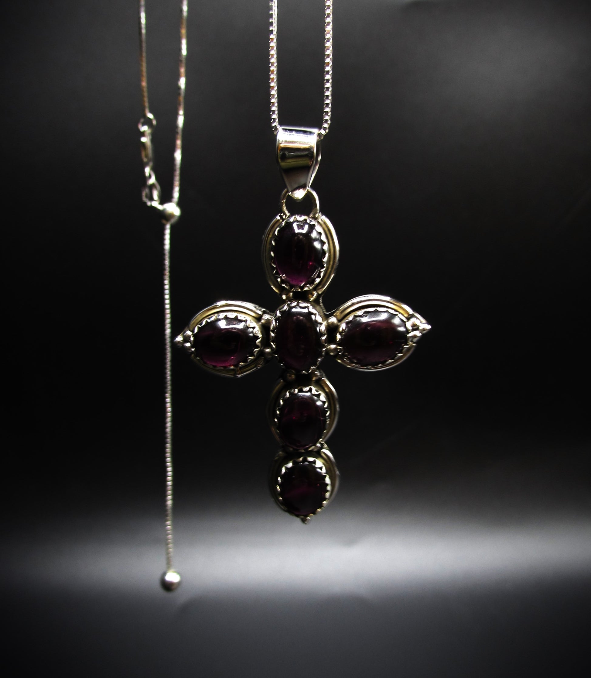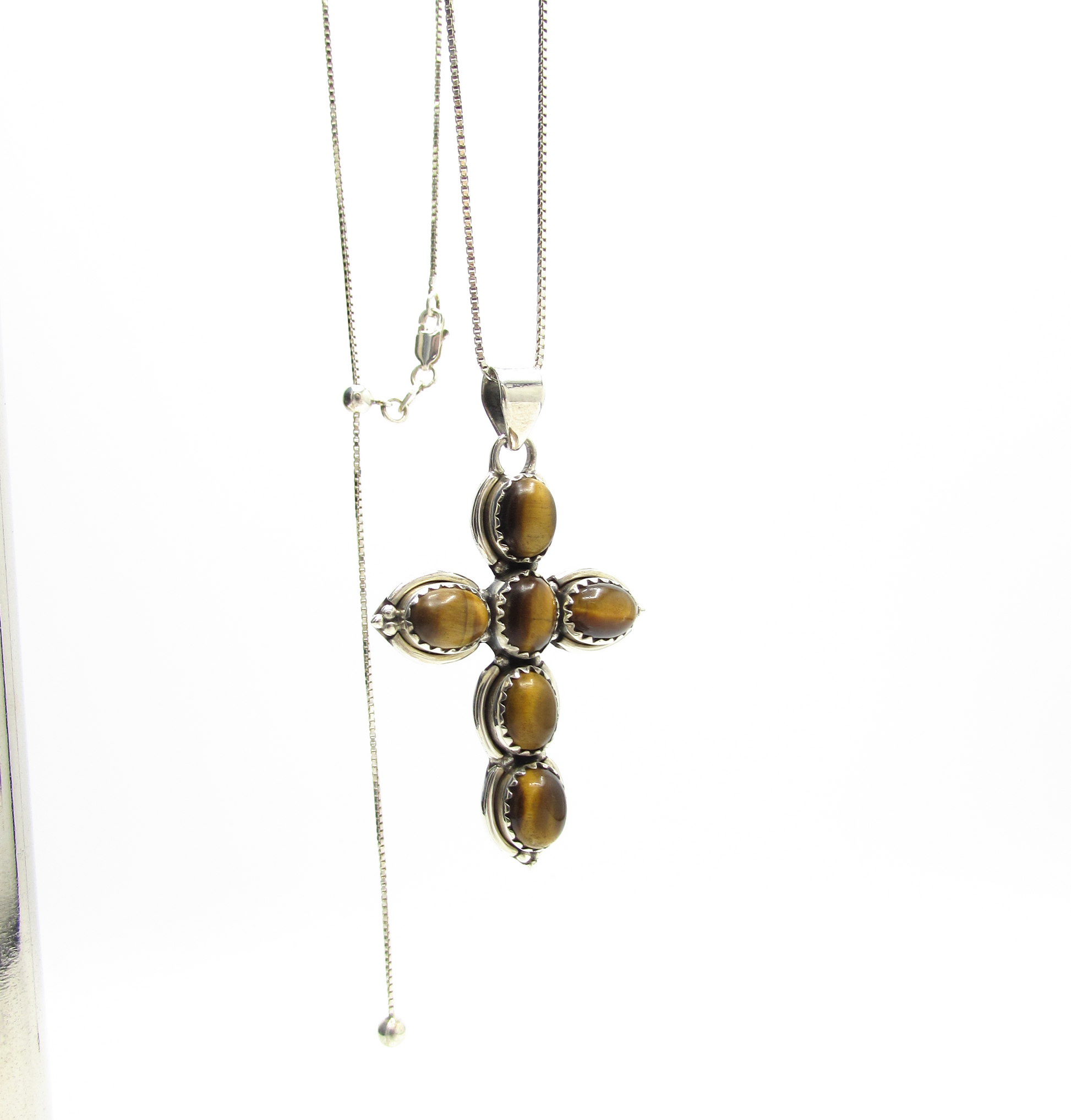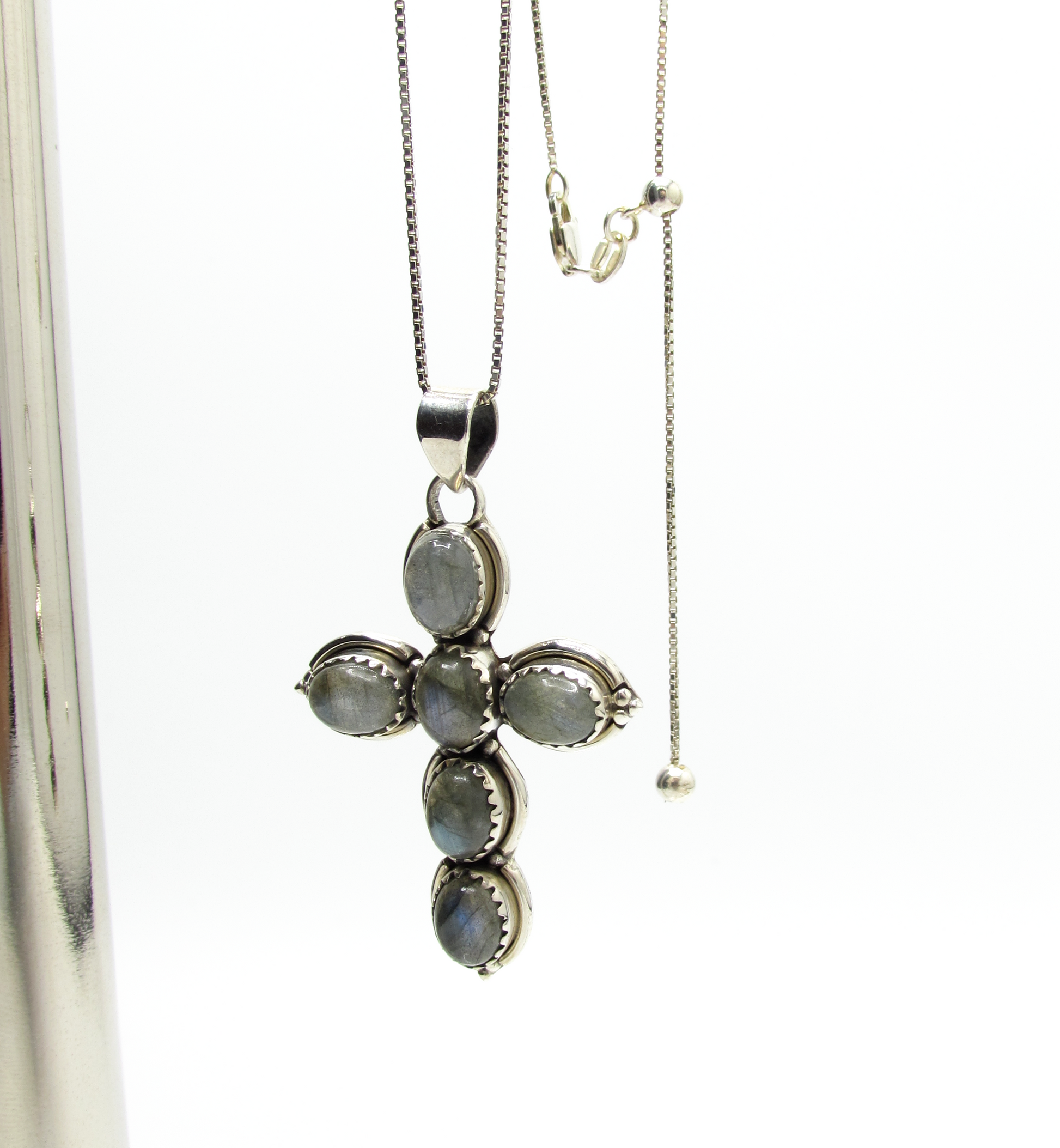 .925 Sterling Silver Cross embedded with genuine Crystals on an adjustable chain