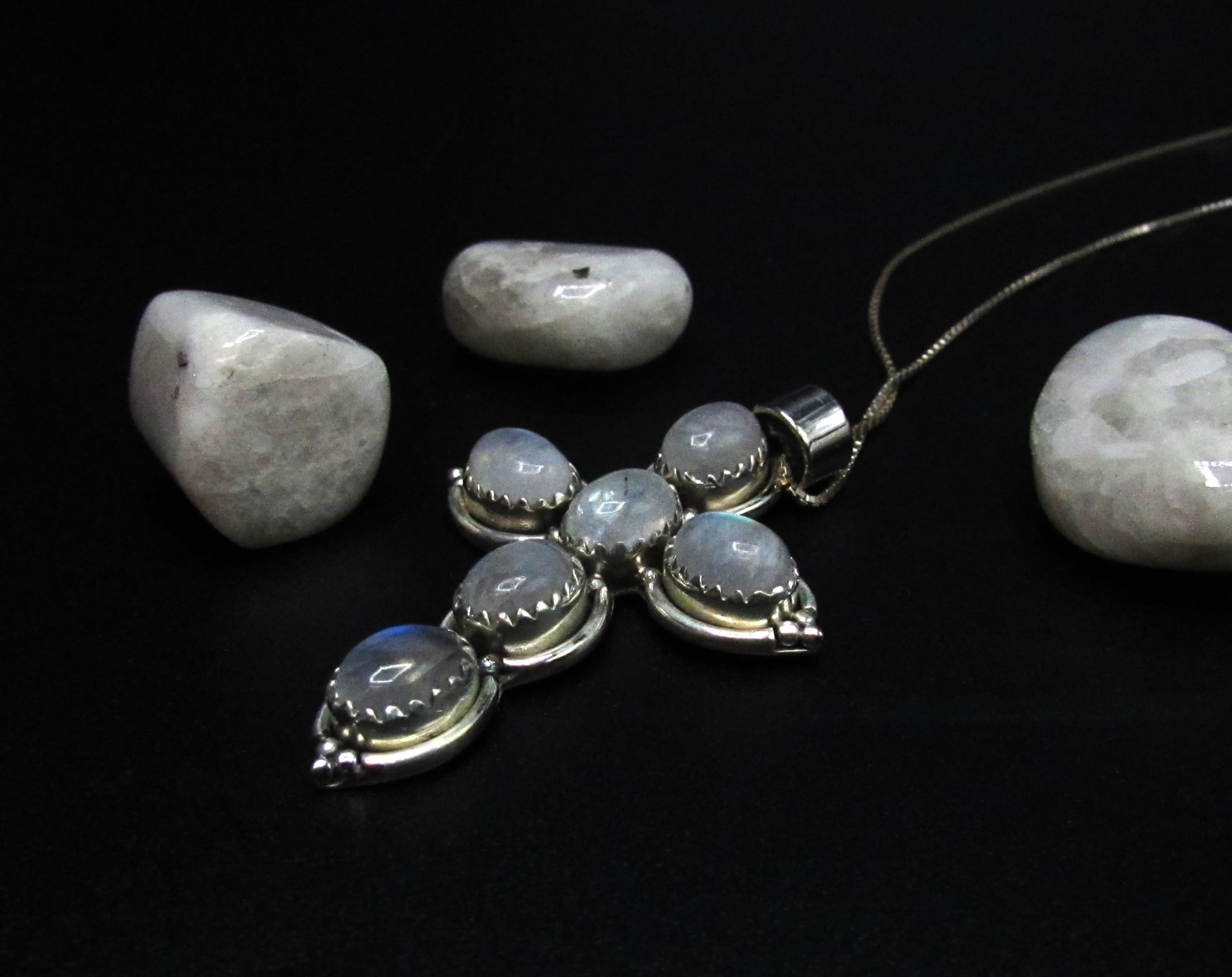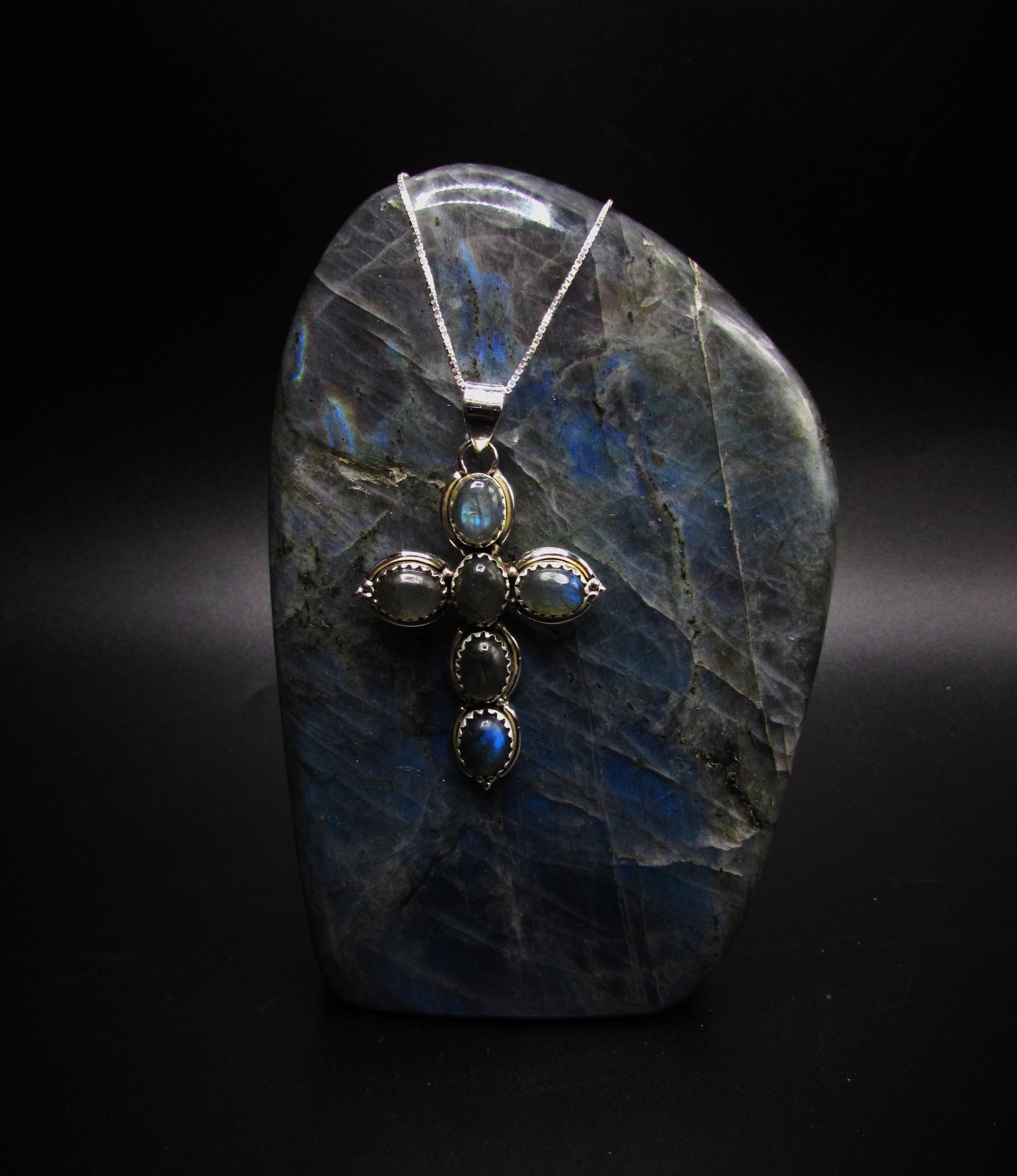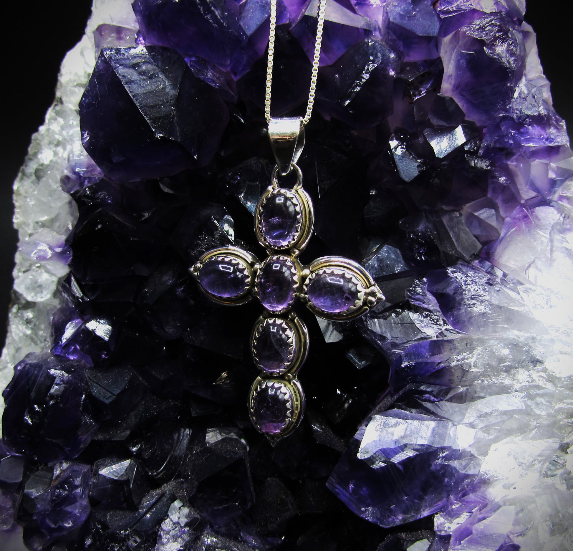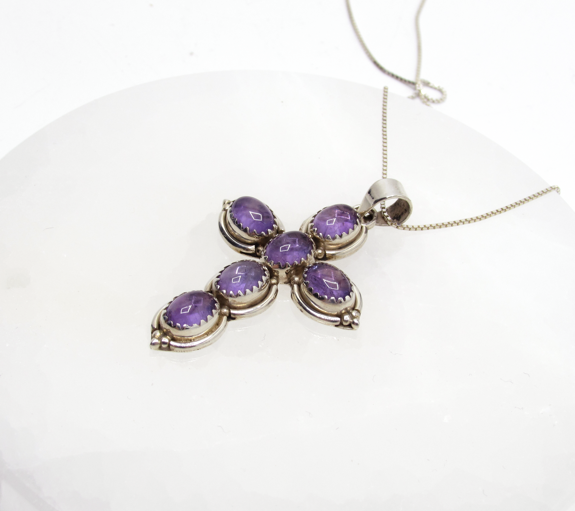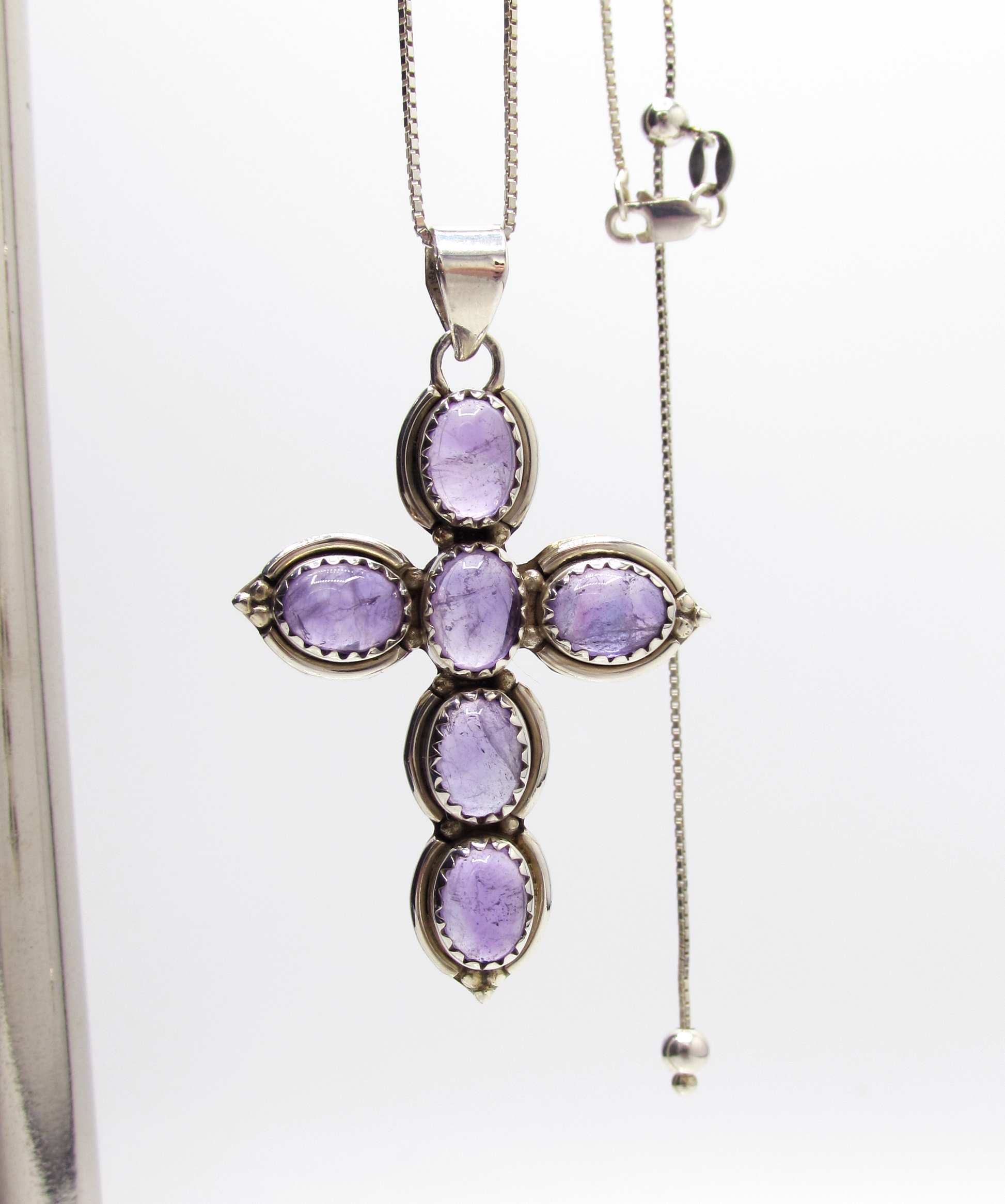 .925 Sterling Silver Cross embedded with genuine Crystals on an adjustable chain