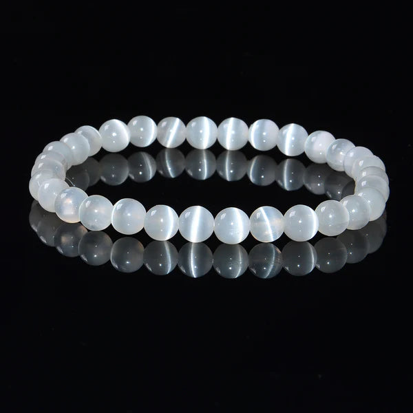 Made with high-quality 6mm selenite gemstone beads (undyed and untreated). Designed for comfort and style. Can be easily slipped on and off, making them perfect for any occasion and size.