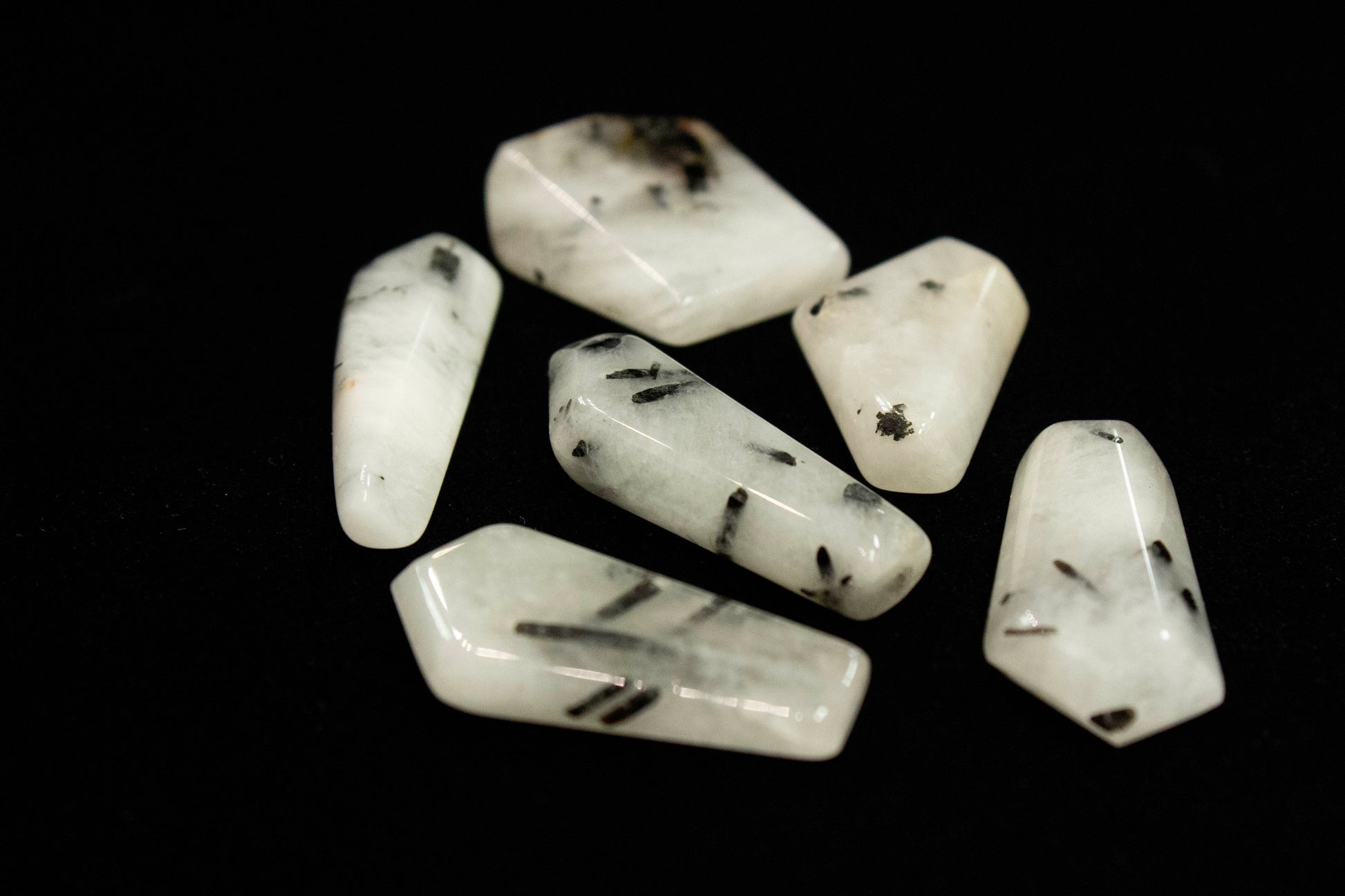 Freeform coffin shaped black tourmaline in quartz available in 2 sizes. Priced individually, intuitively selected.