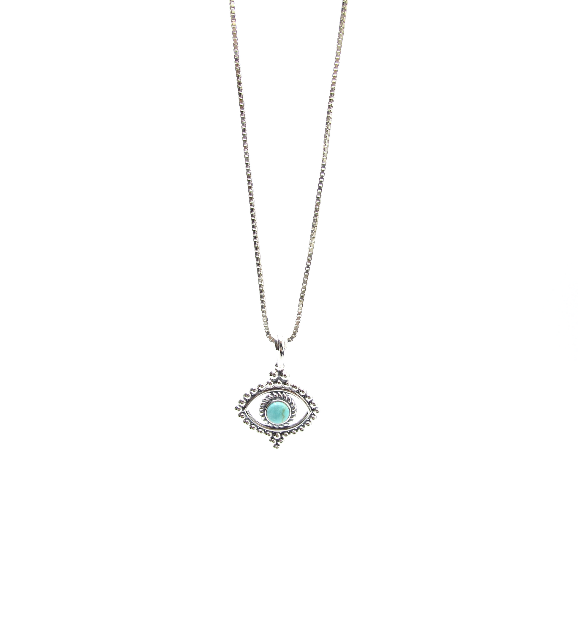 Turquoise Dotted Evil Eye Necklace .925